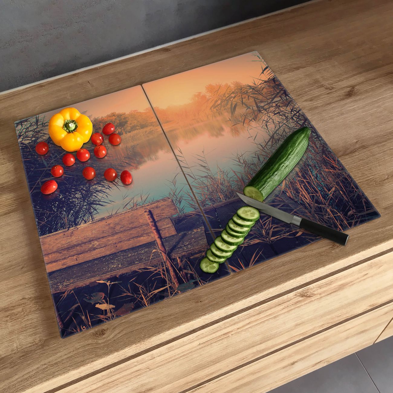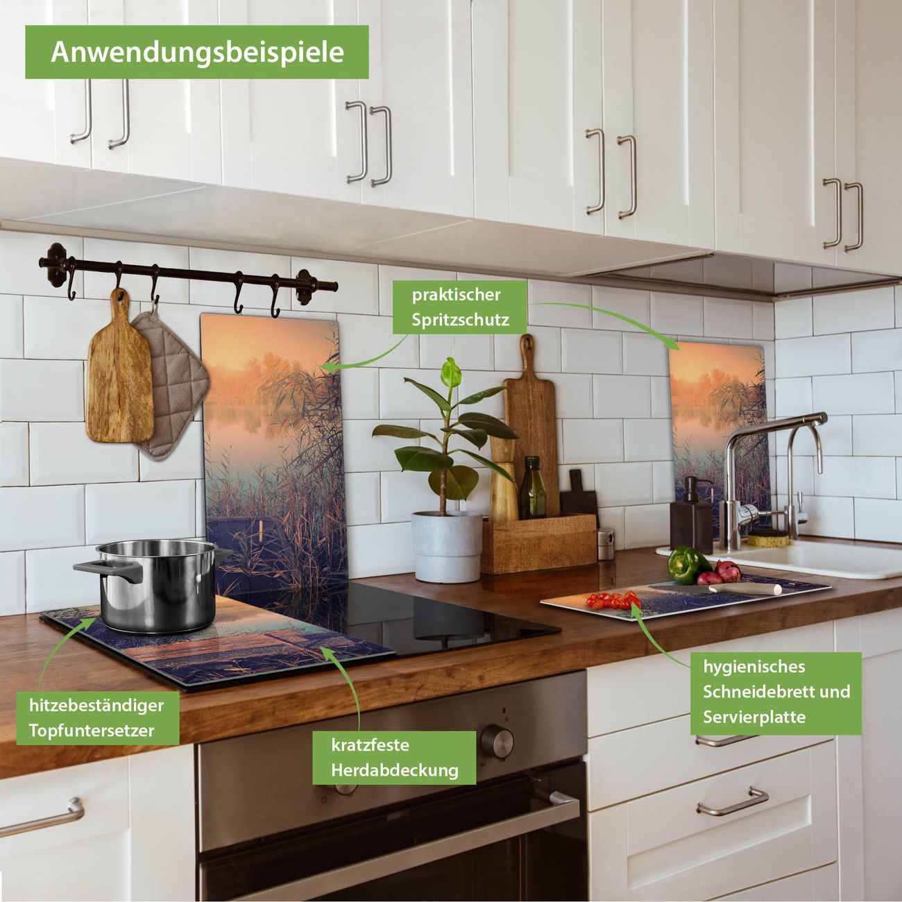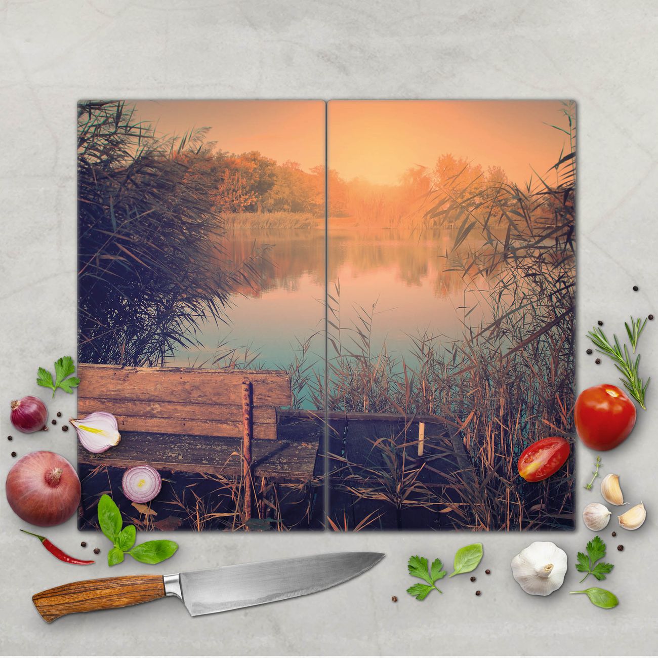 FUNKTION: Das banjado Schneidebrett mit Motiv Bank Am See ist groß und rutschfest und damit ideal für Ihre Küche. Besonders praktisch. Das Schneidebrett ist vielseitig einsetzbar: ob als Spritzschutz hinter dem Herd für Ihre Küche oder als Glas Schneidebrett als hygienische und geruchsneutrale Unterlage. Sie können ebenfalls heiße Töpfe und Pfannen bis 100°C auf der Herdplattenabdeckung abstellen. Sie erhalten ein Multitalent für Ihre Küche. QUALITÄT: Die Schneideplatte Glas besteht aus hochwertigem, gehärtetem und hitzebeständigem Glas. Wählen Sie aus einem unserer zahlreichen Motive das passende Design für Ihre Küche aus. DETAILS: Das Schneidebrett Glas groß ist in verschiedenen Größen verfügbar. Sie erhalten separate Gumminoppen damit Ihr großes Schneidebrett rutschfest in der Küche steht. VIELSEITIG: Das Schneidebrett modern ist ein Allrounder - als Schneideunterlage Küche direkt auf dem Herd oder separat und als Spritzschutz an der Wand aufgestellt - ein praktisches Küchenutensil. BANJADO: Auf Wunsch fertigen wir das Glas Schneide Brett auch als Sondergröße an. Mehrteilige Platten sind auch möglich. Kontaktieren Sie uns gern für eine Spezialanfertigung Ihrer Glasplatte Küche.