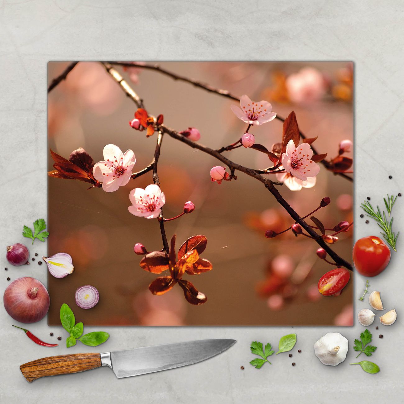 Schneidebrett 1 und 2 teilig Motiv Blühender Kirschzweig