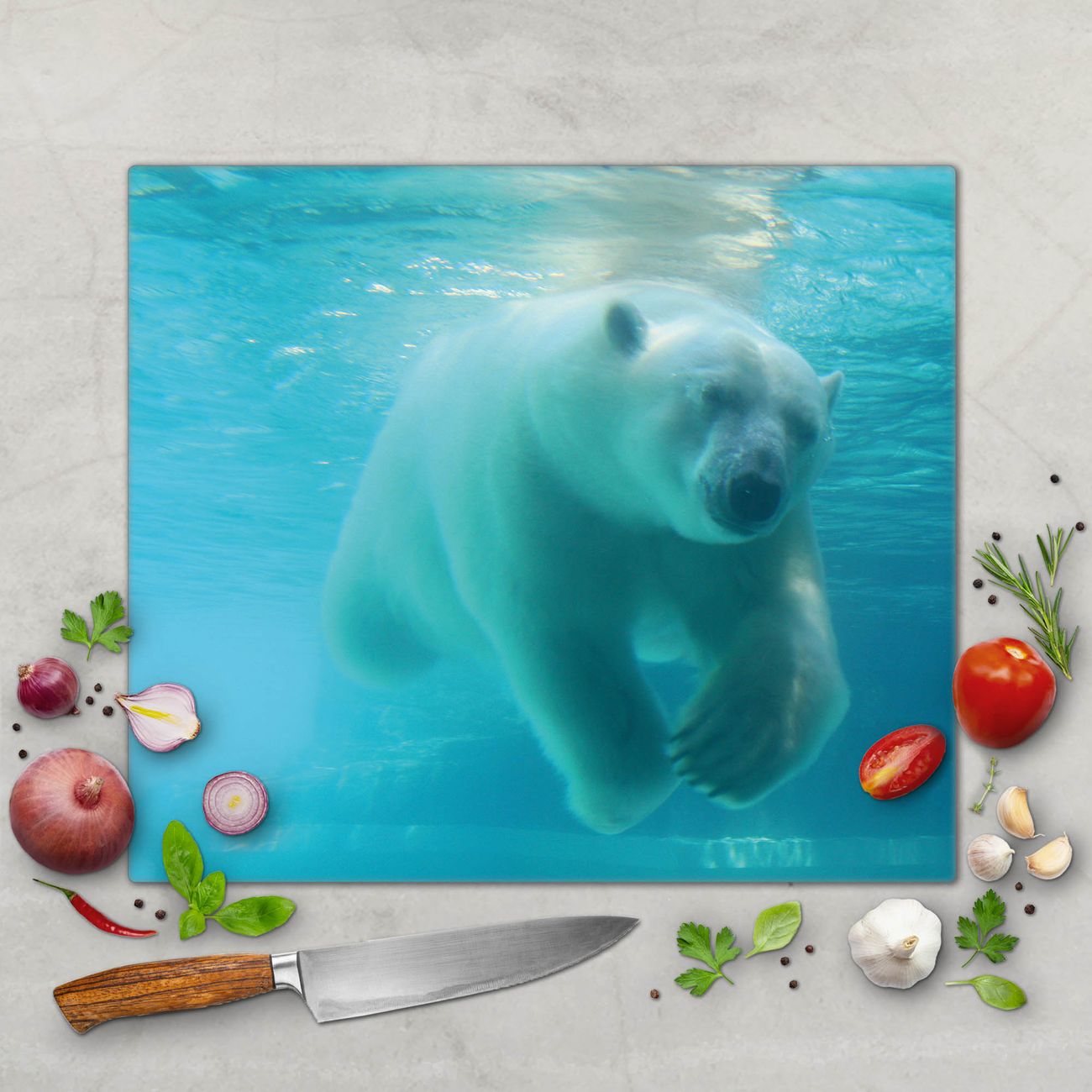 Schneidebrett 1 und 2 teilig Motiv Eisbär unter Wasser