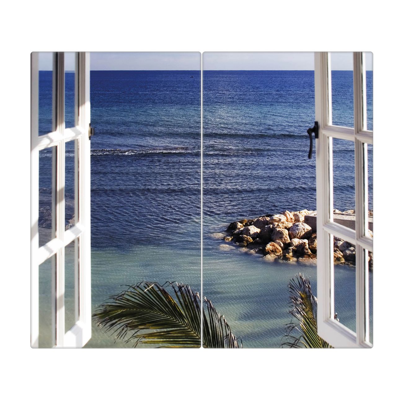 FUNKTION: Das banjado Schneidebrett mit Motiv Fensterpanorama ist groß und rutschfest und damit ideal für Ihre Küche. Besonders praktisch. Das Schneidebrett ist vielseitig einsetzbar: ob als Spritzschutz hinter dem Herd für Ihre Küche oder als Glas Schneidebrett als hygienische und geruchsneutrale Unterlage. Sie können ebenfalls heiße Töpfe und Pfannen bis 100°C auf der Herdplattenabdeckung abstellen. Sie erhalten ein Multitalent für Ihre Küche. QUALITÄT: Die Schneideplatte Glas besteht aus hochwertigem, gehärtetem und hitzebeständigem Glas. Wählen Sie aus einem unserer zahlreichen Motive das passende Design für Ihre Küche aus. DETAILS: Das Schneidebrett Glas groß ist in verschiedenen Größen verfügbar. Sie erhalten separate Gumminoppen damit Ihr großes Schneidebrett rutschfest in der Küche steht. VIELSEITIG: Das Schneidebrett modern ist ein Allrounder - als Schneideunterlage Küche direkt auf dem Herd oder separat und als Spritzschutz an der Wand aufgestellt - ein praktisches Küchenutensil. BANJADO: Auf Wunsch fertigen wir das Glas Schneide Brett auch als Sondergröße an. Mehrteilige Platten sind auch möglich. Kontaktieren Sie uns gern für eine Spezialanfertigung Ihrer Glasplatte Küche.