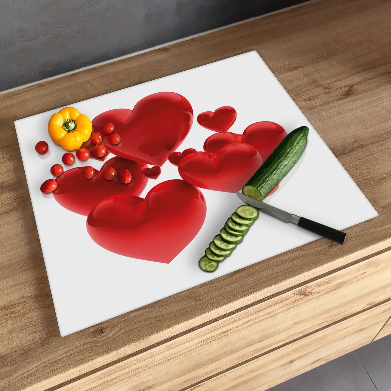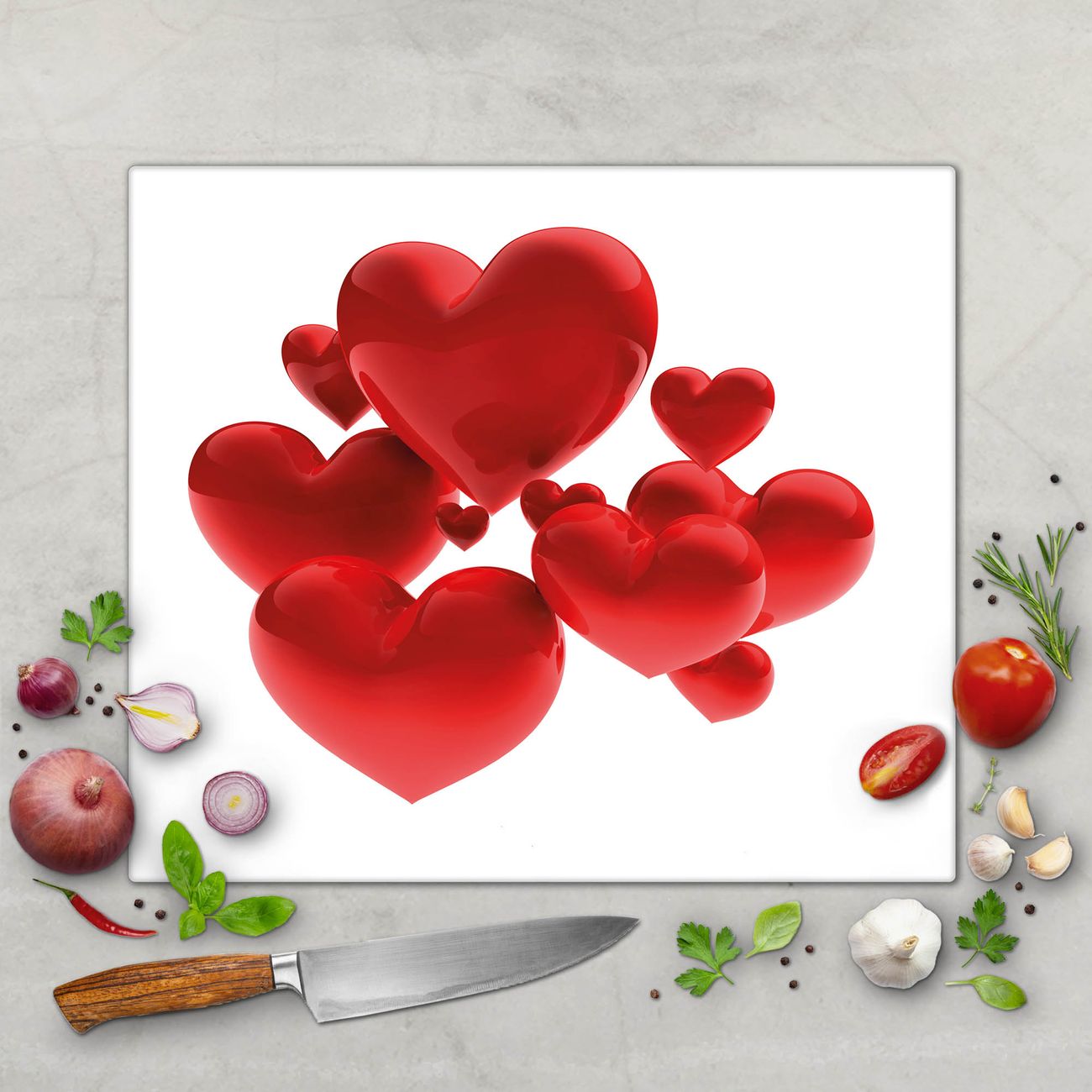 Schneidebrett 1 und 2 teilig Motiv Fliegende Herzen