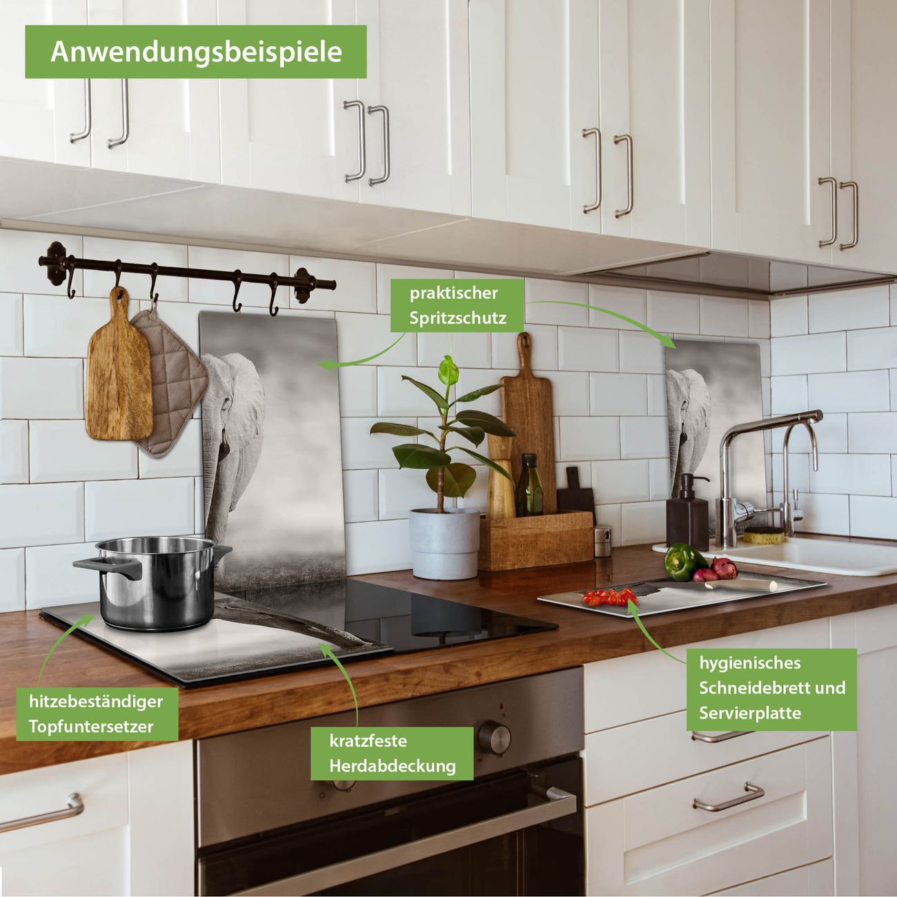FUNKTION: Das banjado Schneidebrett mit Motiv Joseline ist groß und rutschfest und damit ideal für Ihre Küche. Besonders praktisch. Das Schneidebrett ist vielseitig einsetzbar: ob als Spritzschutz hinter dem Herd für Ihre Küche oder als Glas Schneidebrett als hygienische und geruchsneutrale Unterlage. Sie können ebenfalls heiße Töpfe und Pfannen bis 100°C auf der Herdplattenabdeckung abstellen. Sie erhalten ein Multitalent für Ihre Küche. QUALITÄT: Die Schneideplatte Glas besteht aus hochwertigem, gehärtetem und hitzebeständigem Glas. Wählen Sie aus einem unserer zahlreichen Motive das passende Design für Ihre Küche aus. DETAILS: Das Schneidebrett Glas groß ist in verschiedenen Größen verfügbar. Sie erhalten separate Gumminoppen damit Ihr großes Schneidebrett rutschfest in der Küche steht. VIELSEITIG: Das Schneidebrett modern ist ein Allrounder - als Schneideunterlage Küche direkt auf dem Herd oder separat und als Spritzschutz an der Wand aufgestellt - ein praktisches Küchenutensil. BANJADO: Auf Wunsch fertigen wir das Glas Schneide Brett auch als Sondergröße an. Mehrteilige Platten sind auch möglich. Kontaktieren Sie uns gern für eine Spezialanfertigung Ihrer Glasplatte Küche.