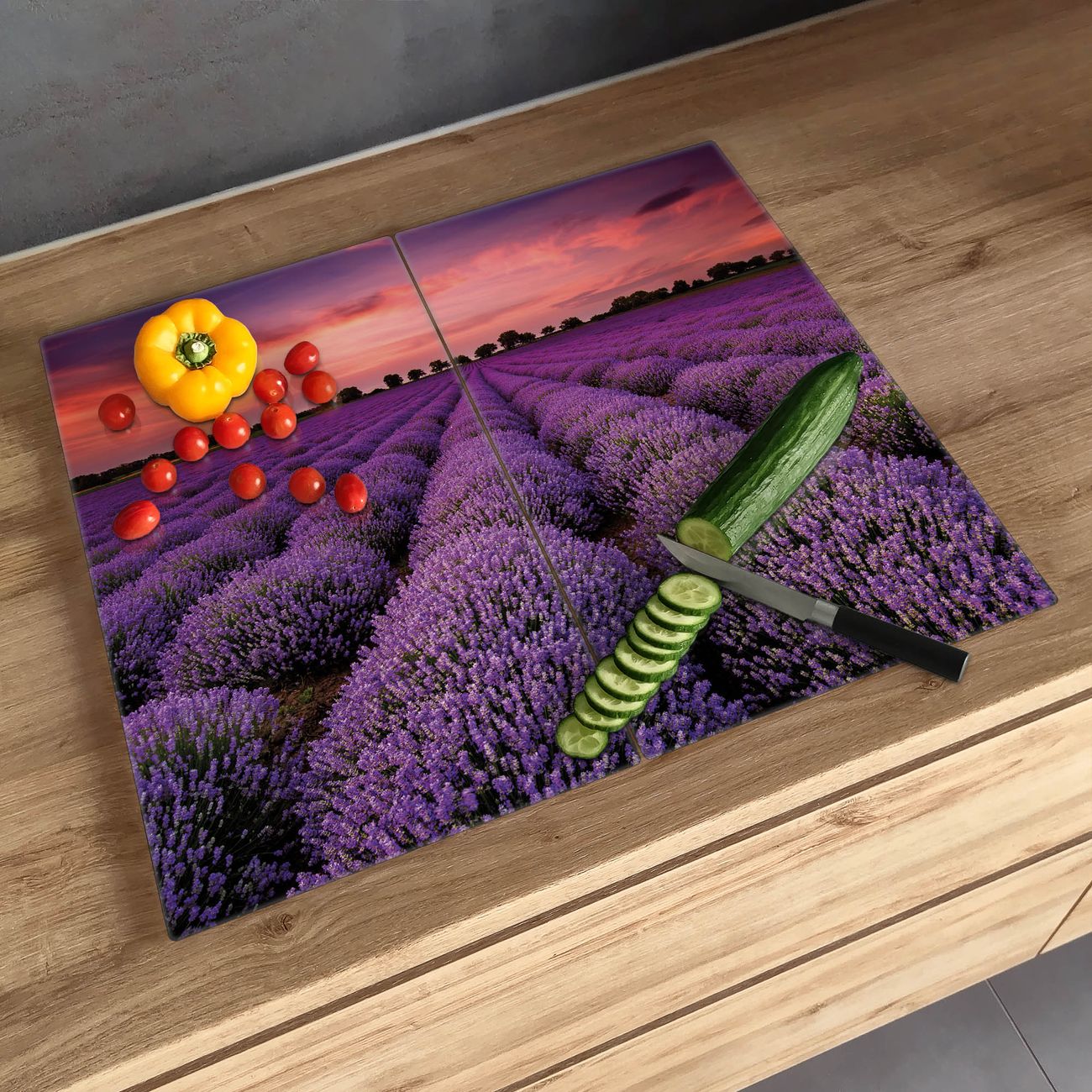 Schneidebrett 1 und 2 teilig Motiv Lavendelfeld