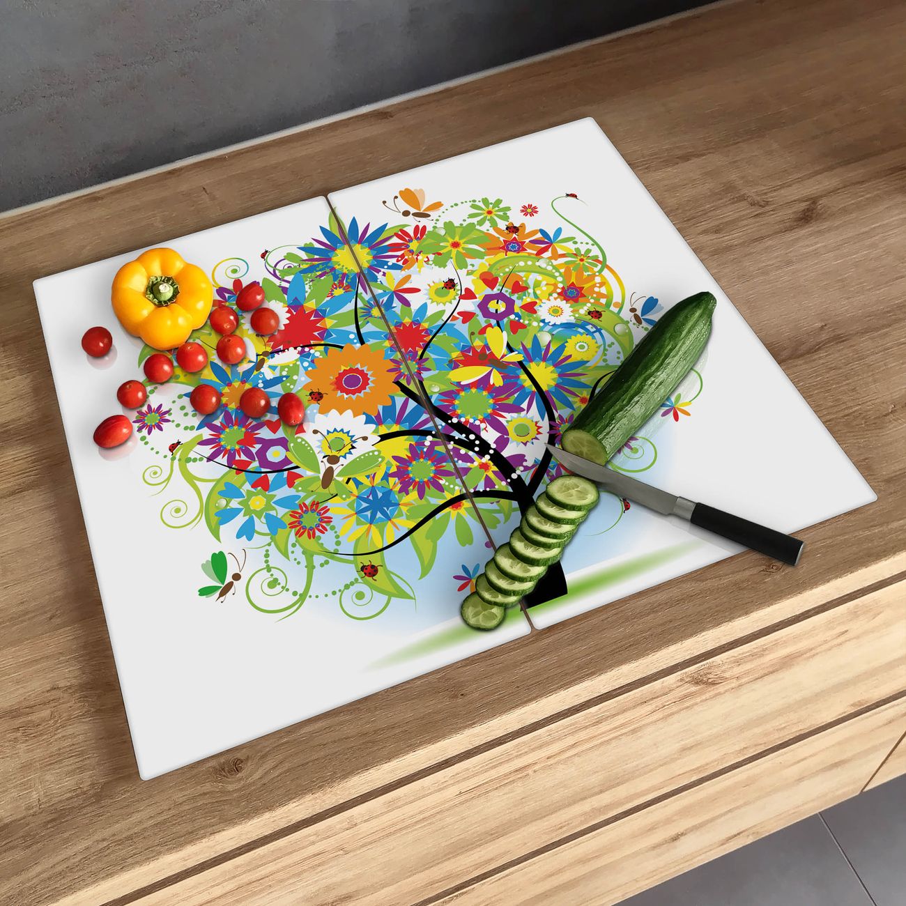 FUNKTION: Das banjado Schneidebrett mit Motiv Märchenzauberbaum ist groß und rutschfest und damit ideal für Ihre Küche. Besonders praktisch. Das Schneidebrett ist vielseitig einsetzbar: ob als Spritzschutz hinter dem Herd für Ihre Küche oder als Glas Schneidebrett als hygienische und geruchsneutrale Unterlage. Sie können ebenfalls heiße Töpfe und Pfannen bis 100°C auf der Herdplattenabdeckung abstellen. Sie erhalten ein Multitalent für Ihre Küche. QUALITÄT: Die Schneideplatte Glas besteht aus hochwertigem, gehärtetem und hitzebeständigem Glas. Wählen Sie aus einem unserer zahlreichen Motive das passende Design für Ihre Küche aus. DETAILS: Das Schneidebrett Glas groß ist in verschiedenen Größen verfügbar. Sie erhalten separate Gumminoppen damit Ihr großes Schneidebrett rutschfest in der Küche steht. VIELSEITIG: Das Schneidebrett modern ist ein Allrounder - als Schneideunterlage Küche direkt auf dem Herd oder separat und als Spritzschutz an der Wand aufgestellt - ein praktisches Küchenutensil. BANJADO: Auf Wunsch fertigen wir das Glas Schneide Brett auch als Sondergröße an. Mehrteilige Platten sind auch möglich. Kontaktieren Sie uns gern für eine Spezialanfertigung Ihrer Glasplatte Küche.
