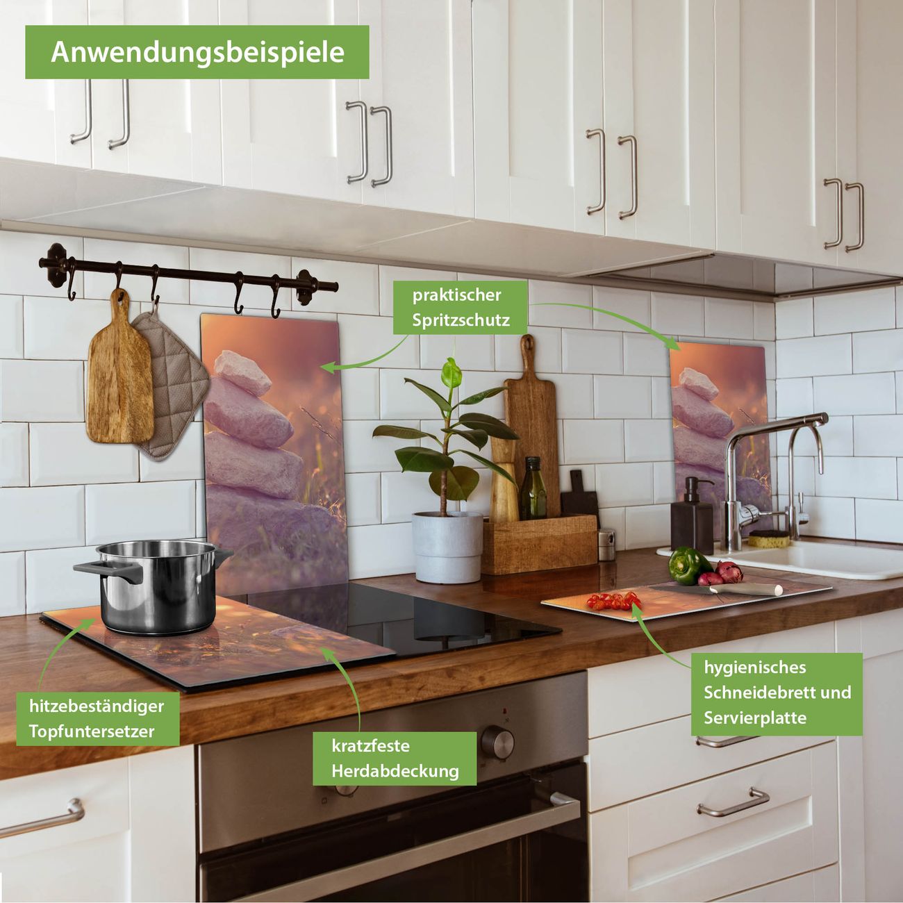 FUNKTION: Das banjado Schneidebrett mit Motiv Mein Ort ist groß und rutschfest und damit ideal für Ihre Küche. Besonders praktisch. Das Schneidebrett ist vielseitig einsetzbar: ob als Spritzschutz hinter dem Herd für Ihre Küche oder als Glas Schneidebrett als hygienische und geruchsneutrale Unterlage. Sie können ebenfalls heiße Töpfe und Pfannen bis 100°C auf der Herdplattenabdeckung abstellen. Sie erhalten ein Multitalent für Ihre Küche. QUALITÄT: Die Schneideplatte Glas besteht aus hochwertigem, gehärtetem und hitzebeständigem Glas. Wählen Sie aus einem unserer zahlreichen Motive das passende Design für Ihre Küche aus. DETAILS: Das Schneidebrett Glas groß ist in verschiedenen Größen verfügbar. Sie erhalten separate Gumminoppen damit Ihr großes Schneidebrett rutschfest in der Küche steht. VIELSEITIG: Das Schneidebrett modern ist ein Allrounder - als Schneideunterlage Küche direkt auf dem Herd oder separat und als Spritzschutz an der Wand aufgestellt - ein praktisches Küchenutensil. BANJADO: Auf Wunsch fertigen wir das Glas Schneide Brett auch als Sondergröße an. Mehrteilige Platten sind auch möglich. Kontaktieren Sie uns gern für eine Spezialanfertigung Ihrer Glasplatte Küche.