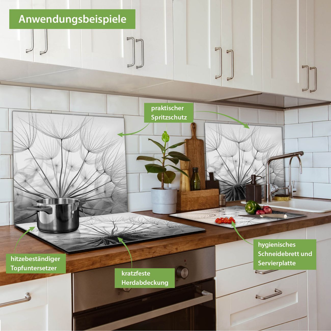 FUNKTION: Das banjado Schneidebrett mit Motiv Ready For Takeoff ist groß und rutschfest und damit ideal für Ihre Küche. Besonders praktisch. Das Schneidebrett ist vielseitig einsetzbar: ob als Spritzschutz hinter dem Herd für Ihre Küche oder als Glas Schneidebrett als hygienische und geruchsneutrale Unterlage. Sie können ebenfalls heiße Töpfe und Pfannen bis 100°C auf der Herdplattenabdeckung abstellen. Sie erhalten ein Multitalent für Ihre Küche. QUALITÄT: Die Schneideplatte Glas besteht aus hochwertigem, gehärtetem und hitzebeständigem Glas. Wählen Sie aus einem unserer zahlreichen Motive das passende Design für Ihre Küche aus. DETAILS: Das Schneidebrett Glas groß ist in verschiedenen Größen verfügbar. Sie erhalten separate Gumminoppen damit Ihr großes Schneidebrett rutschfest in der Küche steht. VIELSEITIG: Das Schneidebrett modern ist ein Allrounder - als Schneideunterlage Küche direkt auf dem Herd oder separat und als Spritzschutz an der Wand aufgestellt - ein praktisches Küchenutensil. BANJADO: Auf Wunsch fertigen wir das Glas Schneide Brett auch als Sondergröße an. Mehrteilige Platten sind auch möglich. Kontaktieren Sie uns gern für eine Spezialanfertigung Ihrer Glasplatte Küche.