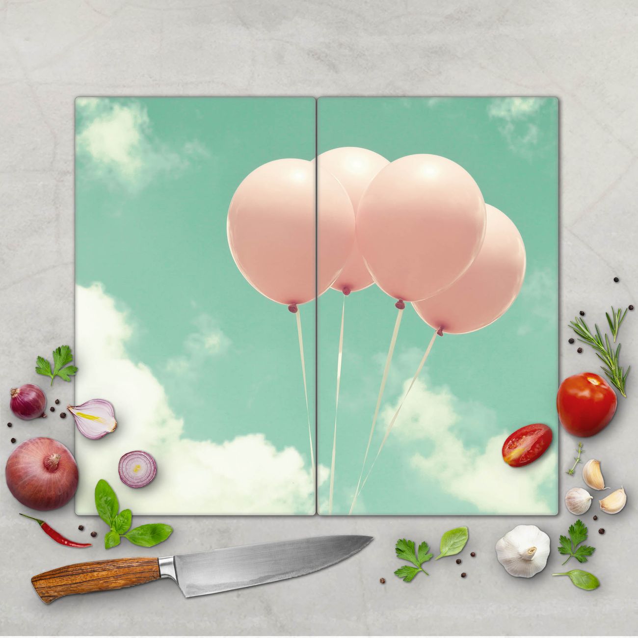 Schneidebrett 1 und 2 teilig Motiv Rosa Ballons
