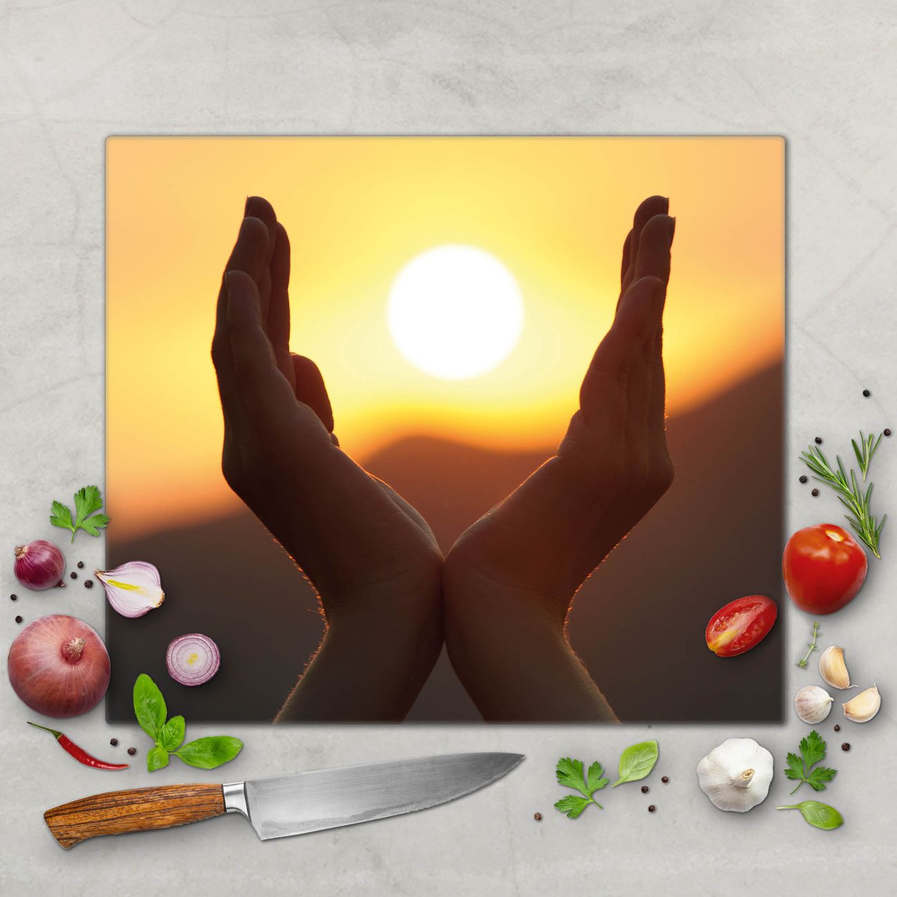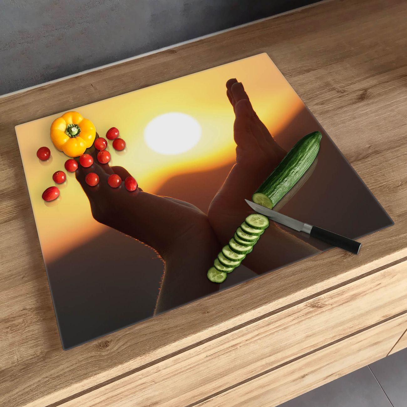 Schneidebrett 1 und 2 teilig Motiv Sonnenanbeter