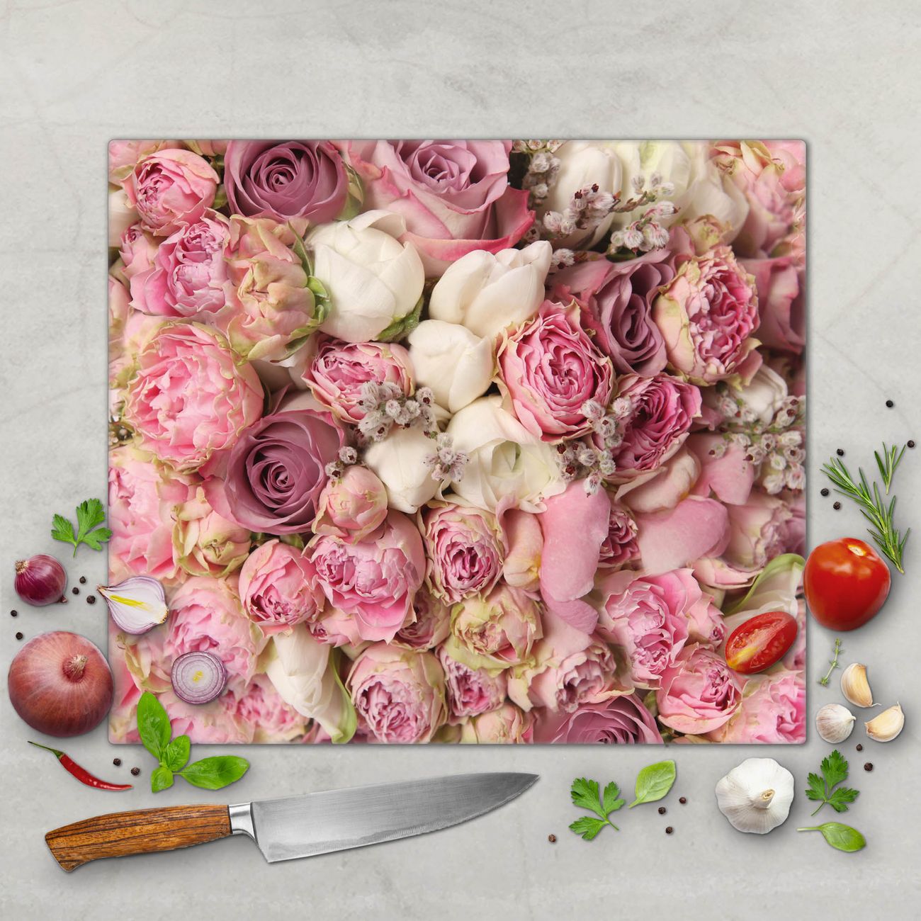 Schneidebrett 1 und 2 teilig Motiv Strauss Rosen