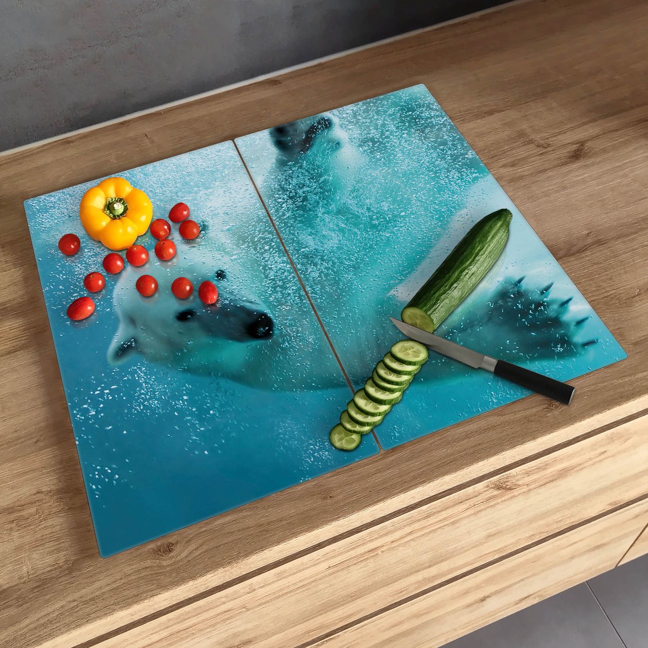 Schneidebrett 1 und 2 teilig Motiv Tauchender Eisbär