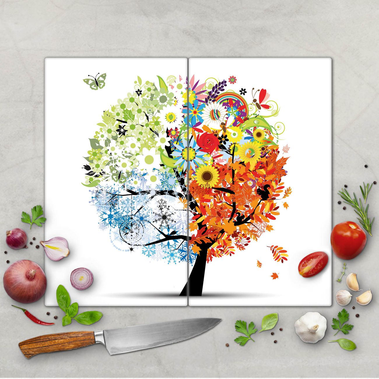 Schneidebrett 1 und 2 teilig Motiv Vier Jahreszeiten