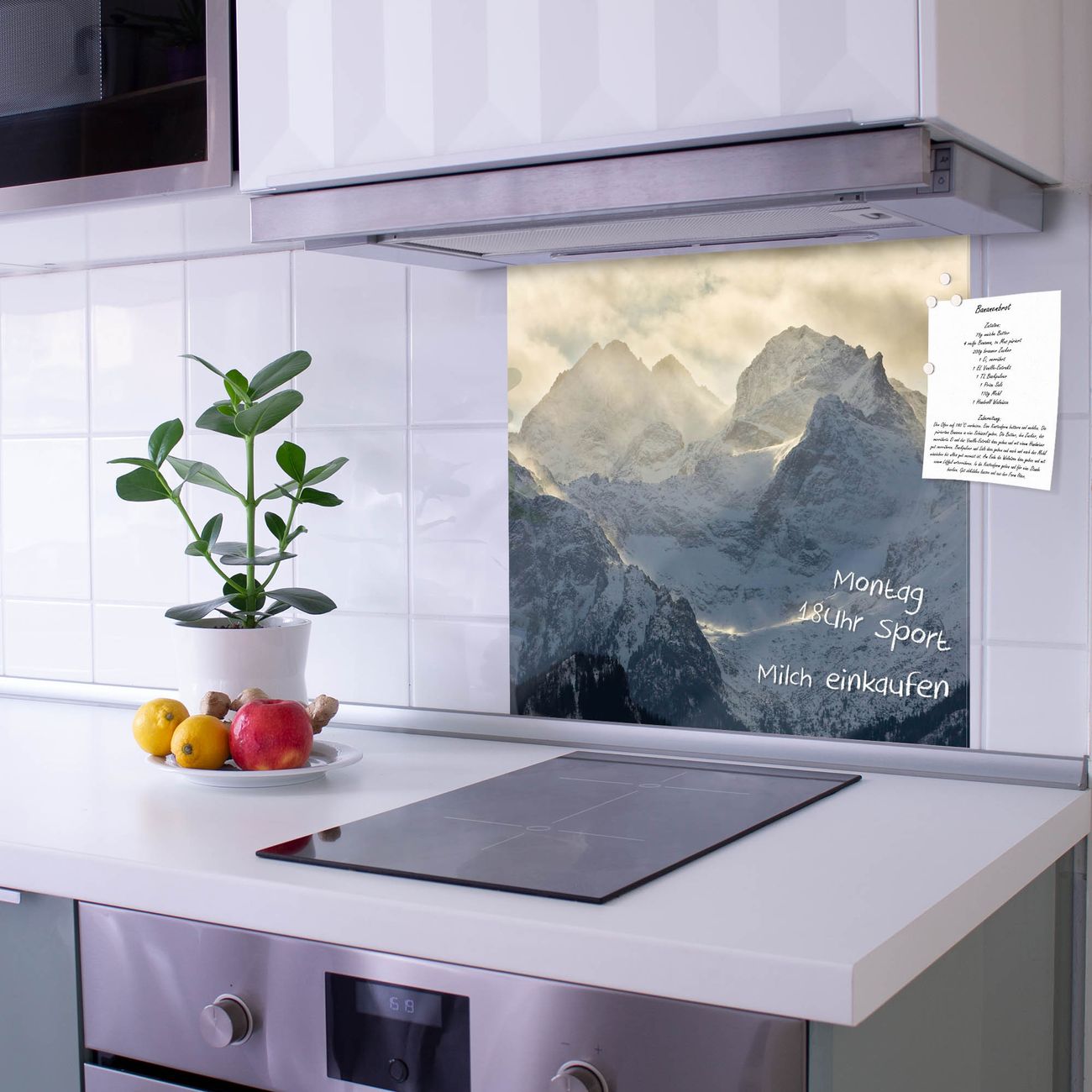 Die Küchenrückwand ist eine elegante Mehrzwecktafel: als Spritzschutz hinter Herd oder Waschbecken, hält Notizen wie ein Memoboard, ist beschreibbar mit Kreidestiften oder Whiteboard-Markern, sieht umwerfend als Glasbild aus. Sie besteht aus gehärtetem Glas, die Rückwand aus einem magnetischen Stahlblech. Durch die superflache Bauweise haben Sie die Wahl aus einer Vielzahl von Befestigungsmöglichkeiten. Sie können die Küchenrückwand mit einem Montagekleber superflach an die Wand kleben oder Sie wählen eines unserer passenden Befestigungssets, welches eine optimale Montage garantiert. Die Küchenrückwand besteht aus zertifiziertem Sicherheitsglas. Durch die mitgelieferten 4 Neodym-Magnete ist Ihre Glas Magnettafel sofort einsatzbereit.