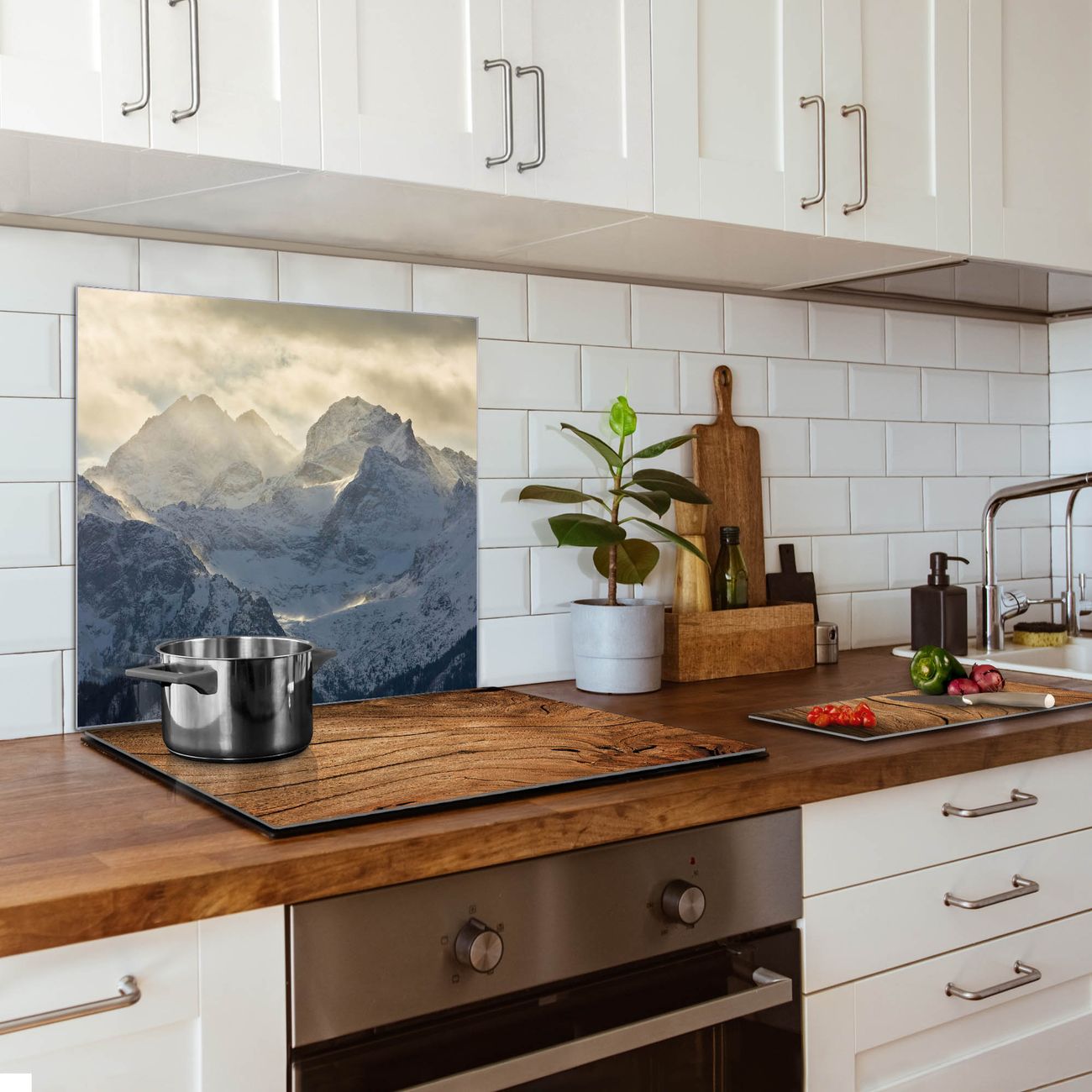 Die banjado Glas Küchenrückwand in verschiedenen Größen mit Motiv Alpen im Sonnenschein schützt Ihre Küchenfliesen vor Fettspritzern oder Wasserflecken. Der Spritzschutz ist gleichzeitig magnetisch und hält Ihre Rezepte oder Einkaufslisten. 4 Neodym-Magnete und 1 Kreidestift liegen bereits bei. Leuchtende Motive und hochwertiges Material machen den Spritzschutz zum Designobjekt. Das dekorative Glasbild gibt Ihrer Küche ein individuelles Erscheinungsbild. Abgerundete Kanten und Sicherheitsglas sorgen für einen sicheren Einsatz.