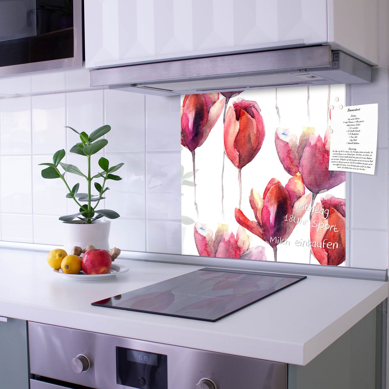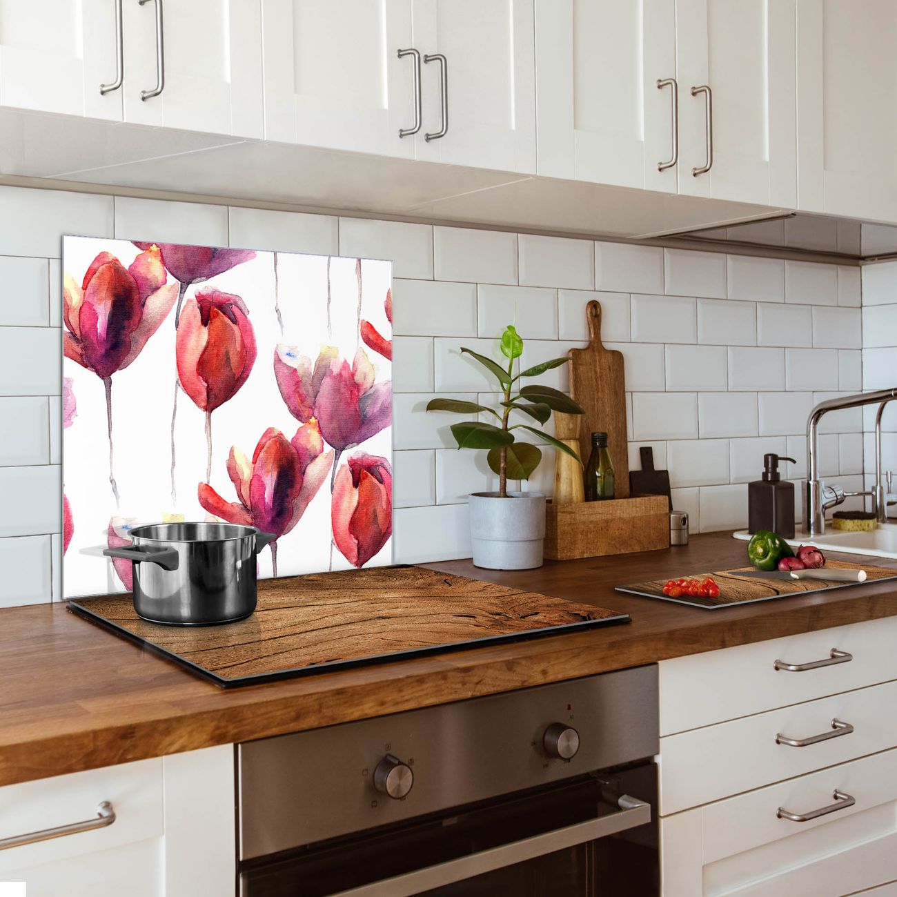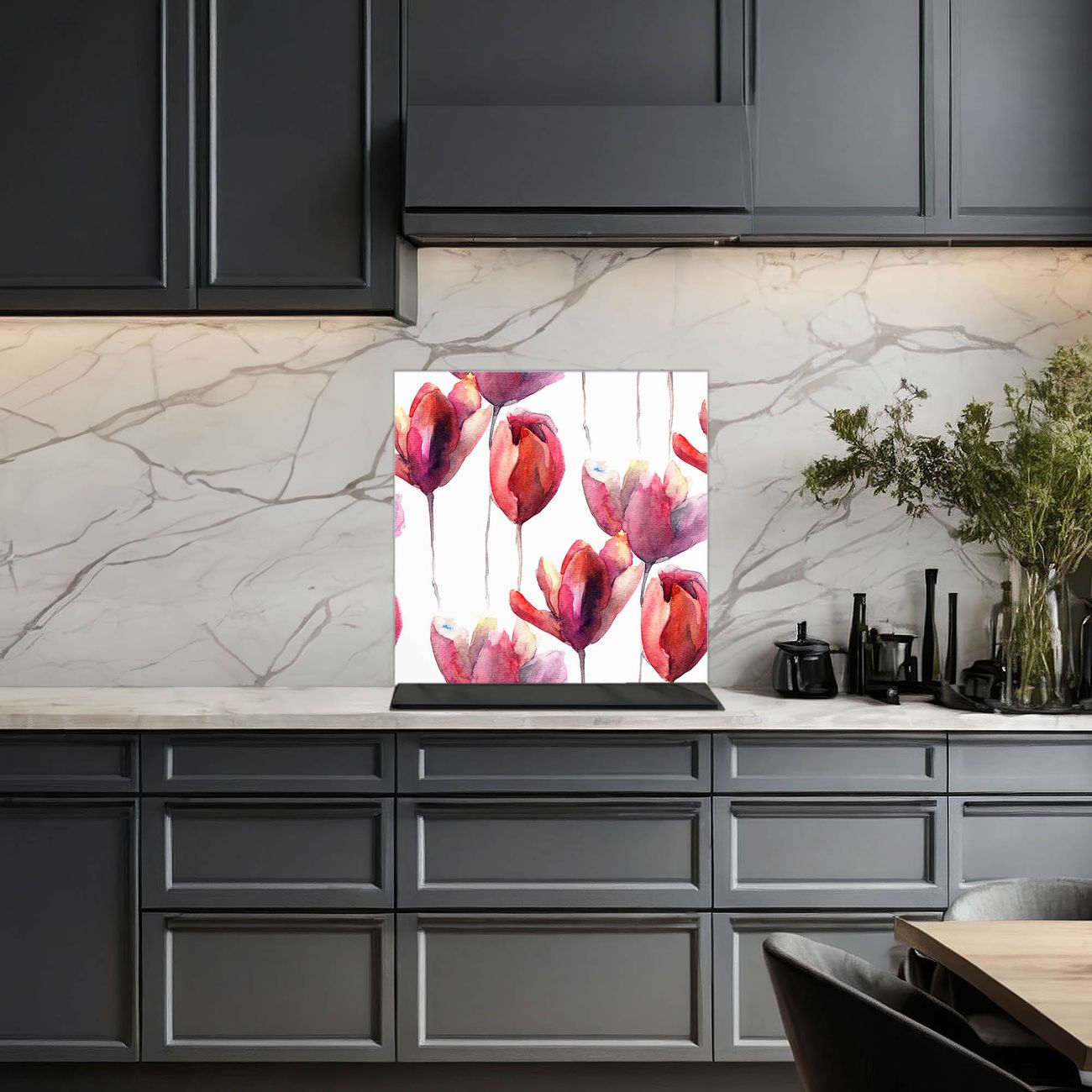 Küchenrückwand Glas Motiv Aquarell Tulpen