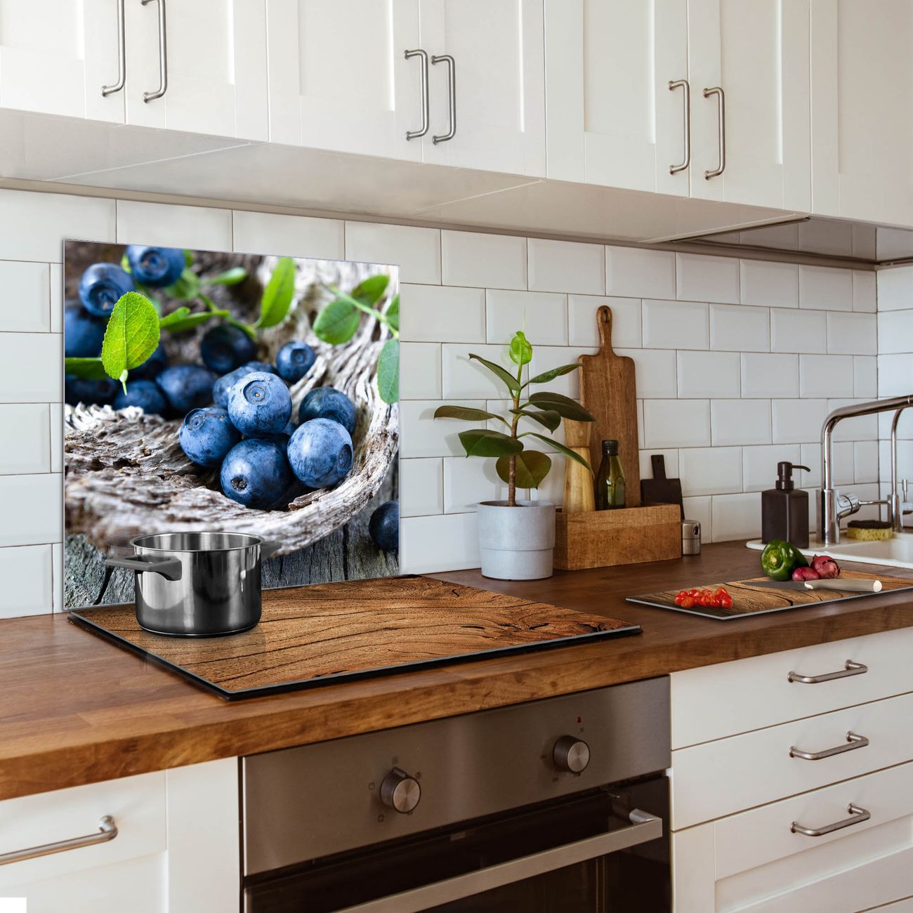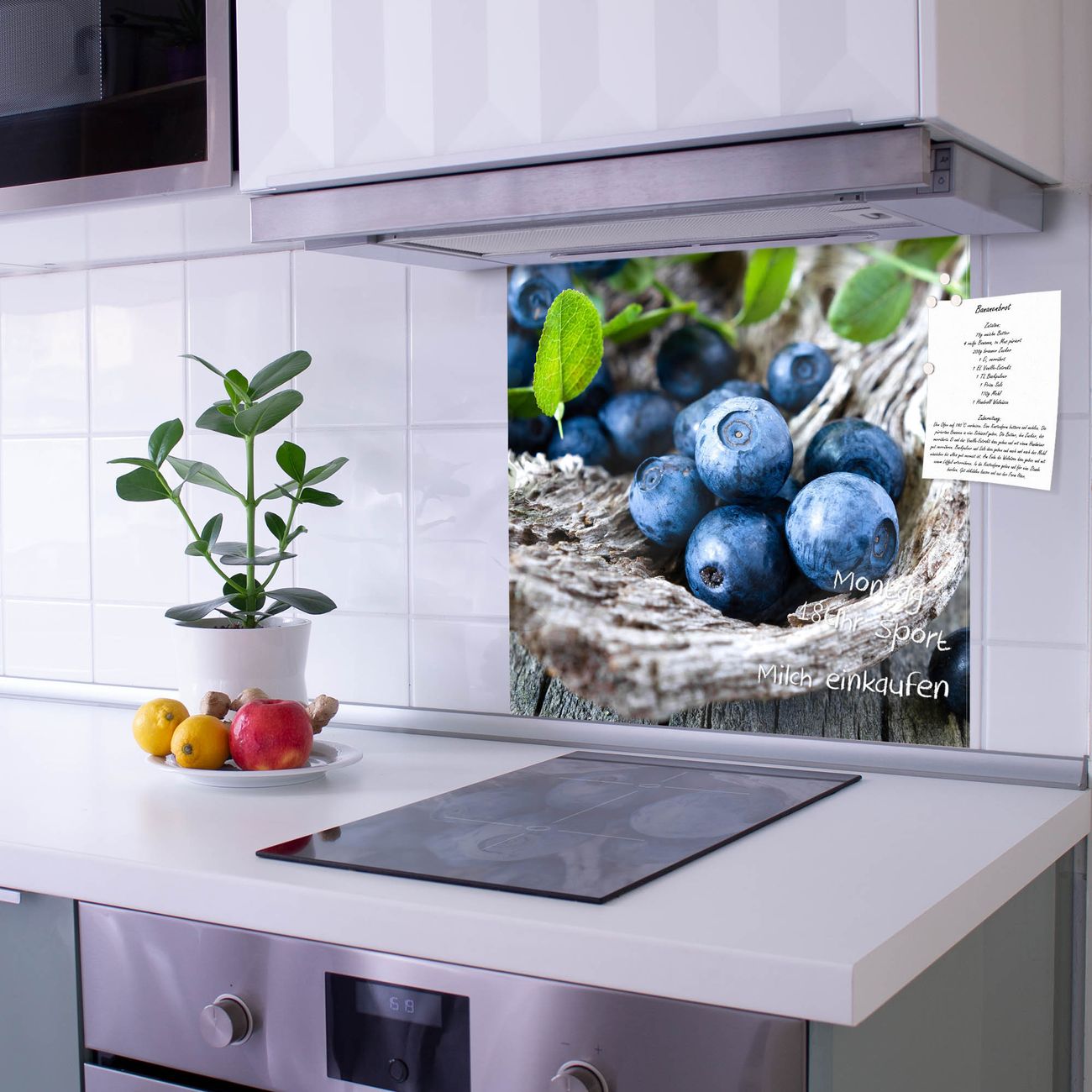 Die banjado Glas Küchenrückwand in verschiedenen Größen mit Motiv Blaubeeren schützt Ihre Küchenfliesen vor Fettspritzern oder Wasserflecken. Der Spritzschutz ist gleichzeitig magnetisch und hält Ihre Rezepte oder Einkaufslisten. 4 Neodym-Magnete und 1 Kreidestift liegen bereits bei. Leuchtende Motive und hochwertiges Material machen den Spritzschutz zum Designobjekt. Das dekorative Glasbild gibt Ihrer Küche ein individuelles Erscheinungsbild. Abgerundete Kanten und Sicherheitsglas sorgen für einen sicheren Einsatz.