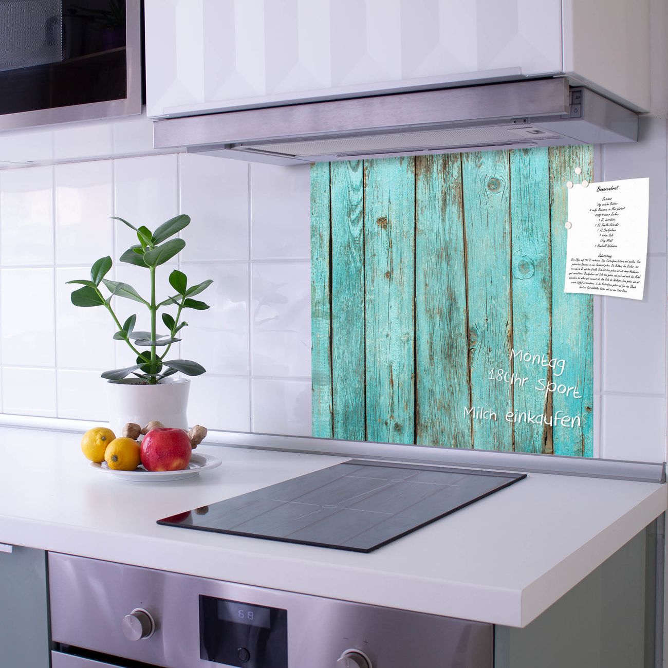 Die banjado Glas Küchenrückwand in verschiedenen Größen mit Motiv Blaues Holz schützt Ihre Küchenfliesen vor Fettspritzern oder Wasserflecken. Der Spritzschutz ist gleichzeitig magnetisch und hält Ihre Rezepte oder Einkaufslisten. 4 Neodym-Magnete und 1 Kreidestift liegen bereits bei. Leuchtende Motive und hochwertiges Material machen den Spritzschutz zum Designobjekt. Das dekorative Glasbild gibt Ihrer Küche ein individuelles Erscheinungsbild. Abgerundete Kanten und Sicherheitsglas sorgen für einen sicheren Einsatz.