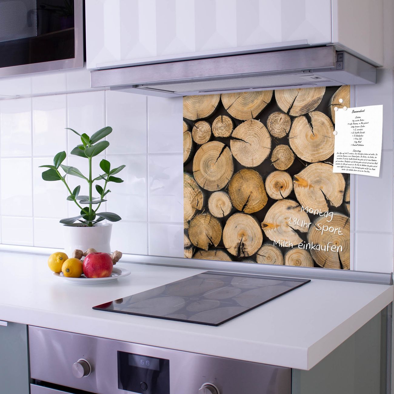 Die banjado Glas Küchenrückwand in verschiedenen Größen mit Motiv Brennholz schützt Ihre Küchenfliesen vor Fettspritzern oder Wasserflecken. Der Spritzschutz ist gleichzeitig magnetisch und hält Ihre Rezepte oder Einkaufslisten. 4 Neodym-Magnete und 1 Kreidestift liegen bereits bei. Leuchtende Motive und hochwertiges Material machen den Spritzschutz zum Designobjekt. Das dekorative Glasbild gibt Ihrer Küche ein individuelles Erscheinungsbild. Abgerundete Kanten und Sicherheitsglas sorgen für einen sicheren Einsatz.