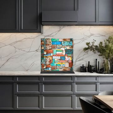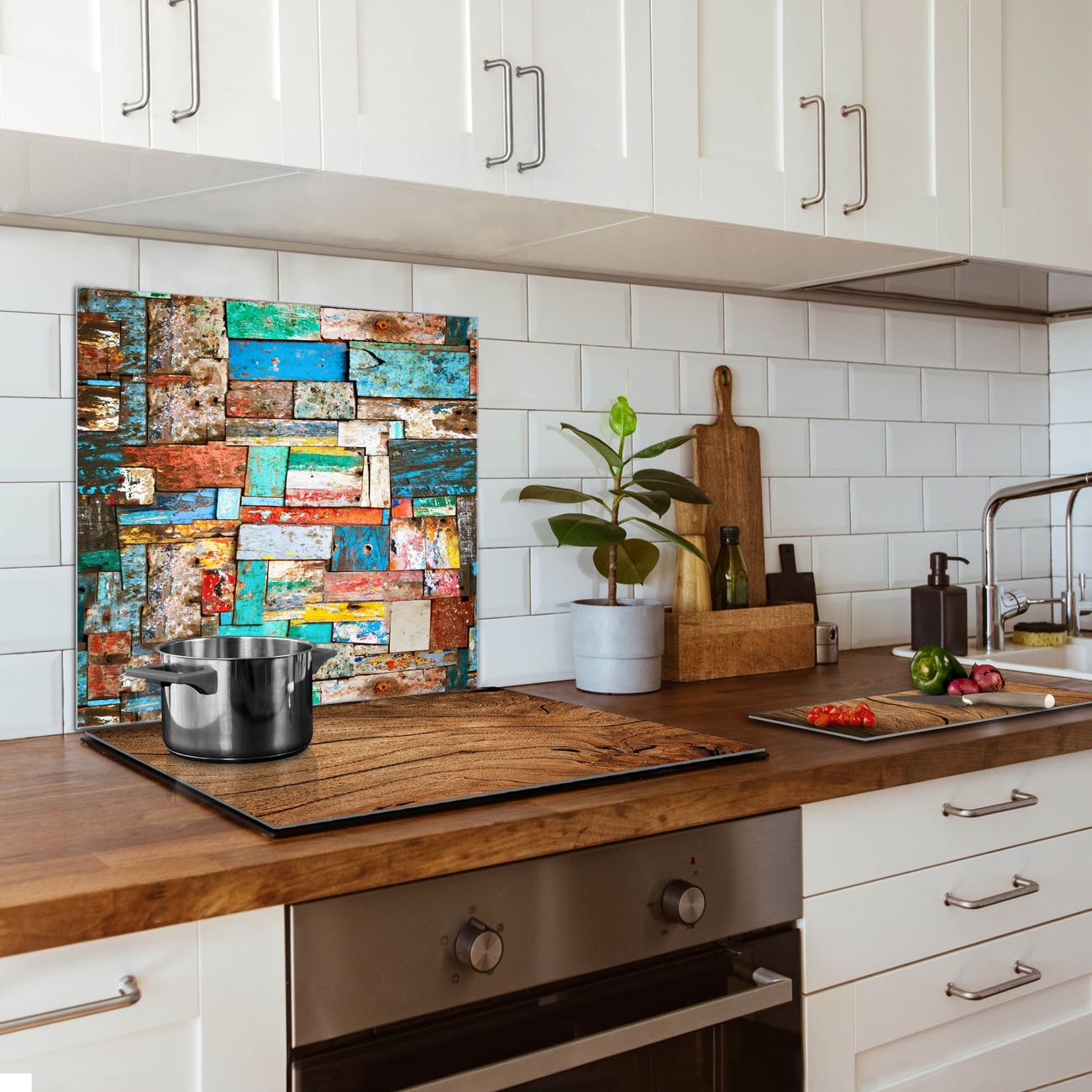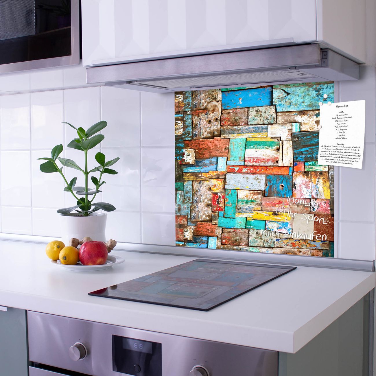 Küchenrückwand Glas Motiv Bunte Holzschindeln