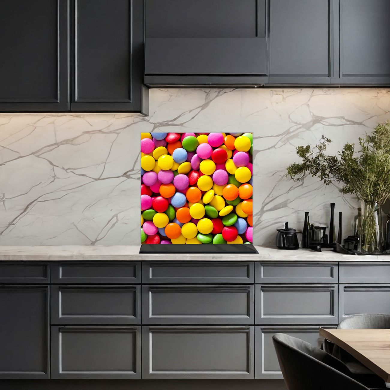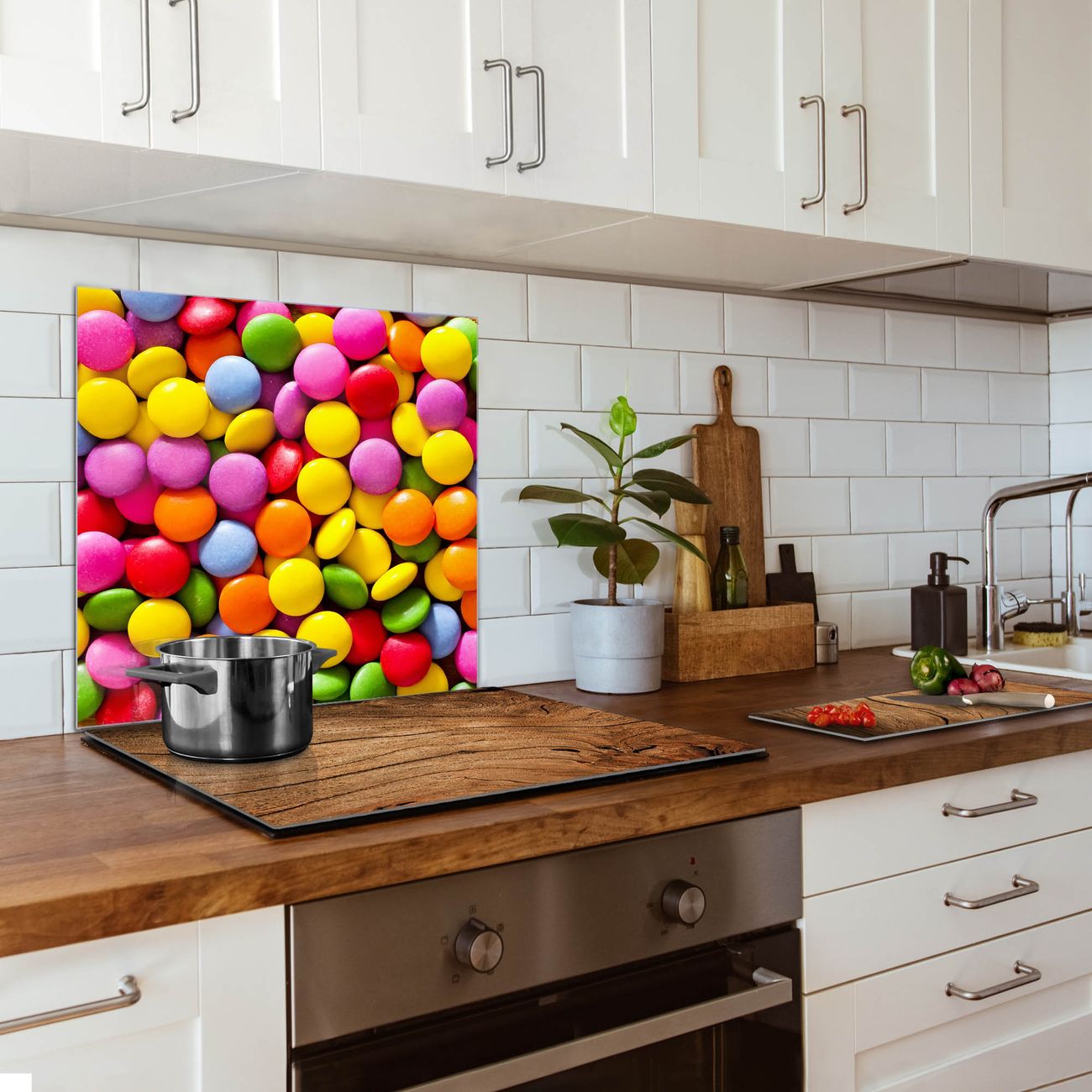 Die banjado Glas Küchenrückwand in verschiedenen Größen mit Motiv Dragees schützt Ihre Küchenfliesen vor Fettspritzern oder Wasserflecken. Der Spritzschutz ist gleichzeitig magnetisch und hält Ihre Rezepte oder Einkaufslisten. 4 Neodym-Magnete und 1 Kreidestift liegen bereits bei. Leuchtende Motive und hochwertiges Material machen den Spritzschutz zum Designobjekt. Das dekorative Glasbild gibt Ihrer Küche ein individuelles Erscheinungsbild. Abgerundete Kanten und Sicherheitsglas sorgen für einen sicheren Einsatz.