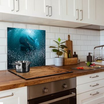 Die banjado Glas Küchenrückwand in verschiedenen Größen mit Motiv Fische im Meer schützt Ihre Küchenfliesen vor Fettspritzern oder Wasserflecken. Der Spritzschutz ist gleichzeitig magnetisch und hält Ihre Rezepte oder Einkaufslisten. 4 Neodym-Magnete und 1 Kreidestift liegen bereits bei. Leuchtende Motive und hochwertiges Material machen den Spritzschutz zum Designobjekt. Das dekorative Glasbild gibt Ihrer Küche ein individuelles Erscheinungsbild. Abgerundete Kanten und Sicherheitsglas sorgen für einen sicheren Einsatz.