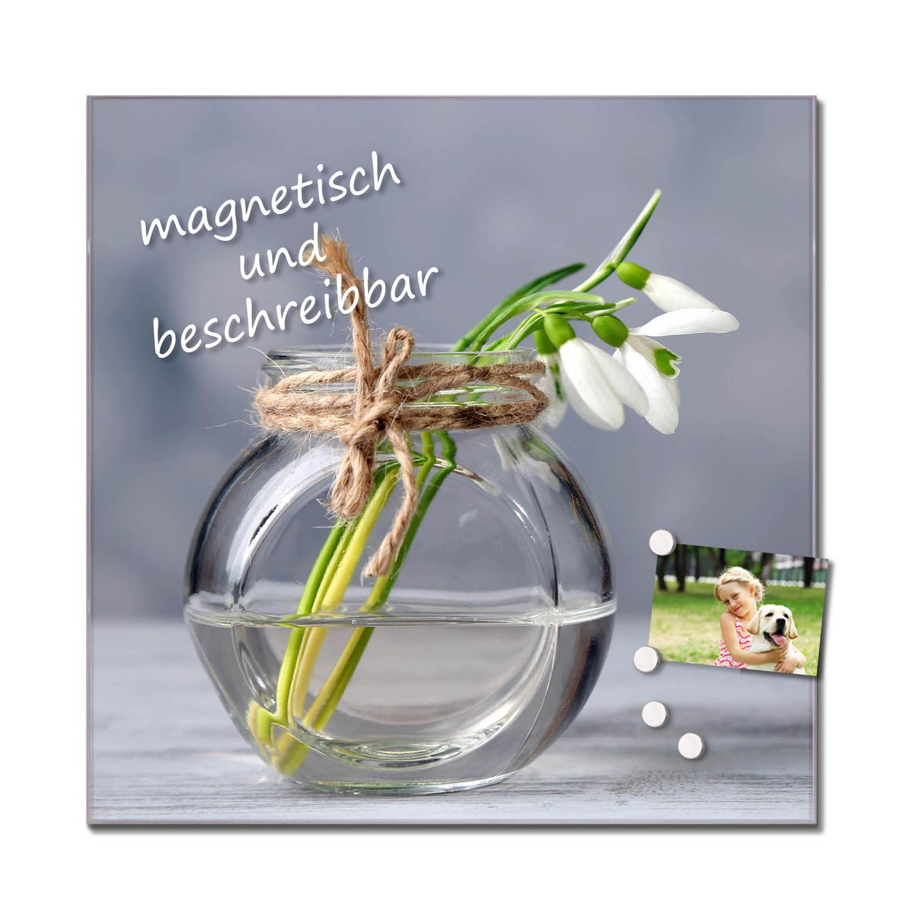 Bitte beachten Sie, dass ausschließlich spezielle Magnete an der Glastafel haften! Wir empfehlen banjado Neodym Magnete, diese sind durch uns auf Wirksamkeit geprüft.