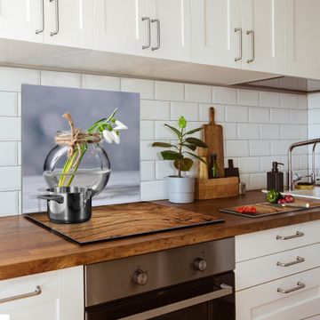 Die banjado Glas Küchenrückwand in verschiedenen Größen mit Motiv Gänseblümchen im Glas schützt Ihre Küchenfliesen vor Fettspritzern oder Wasserflecken. Der Spritzschutz ist gleichzeitig magnetisch und hält Ihre Rezepte oder Einkaufslisten. 4 Neodym-Magnete und 1 Kreidestift liegen bereits bei. Leuchtende Motive und hochwertiges Material machen den Spritzschutz zum Designobjekt. Das dekorative Glasbild gibt Ihrer Küche ein individuelles Erscheinungsbild. Abgerundete Kanten und Sicherheitsglas sorgen für einen sicheren Einsatz.