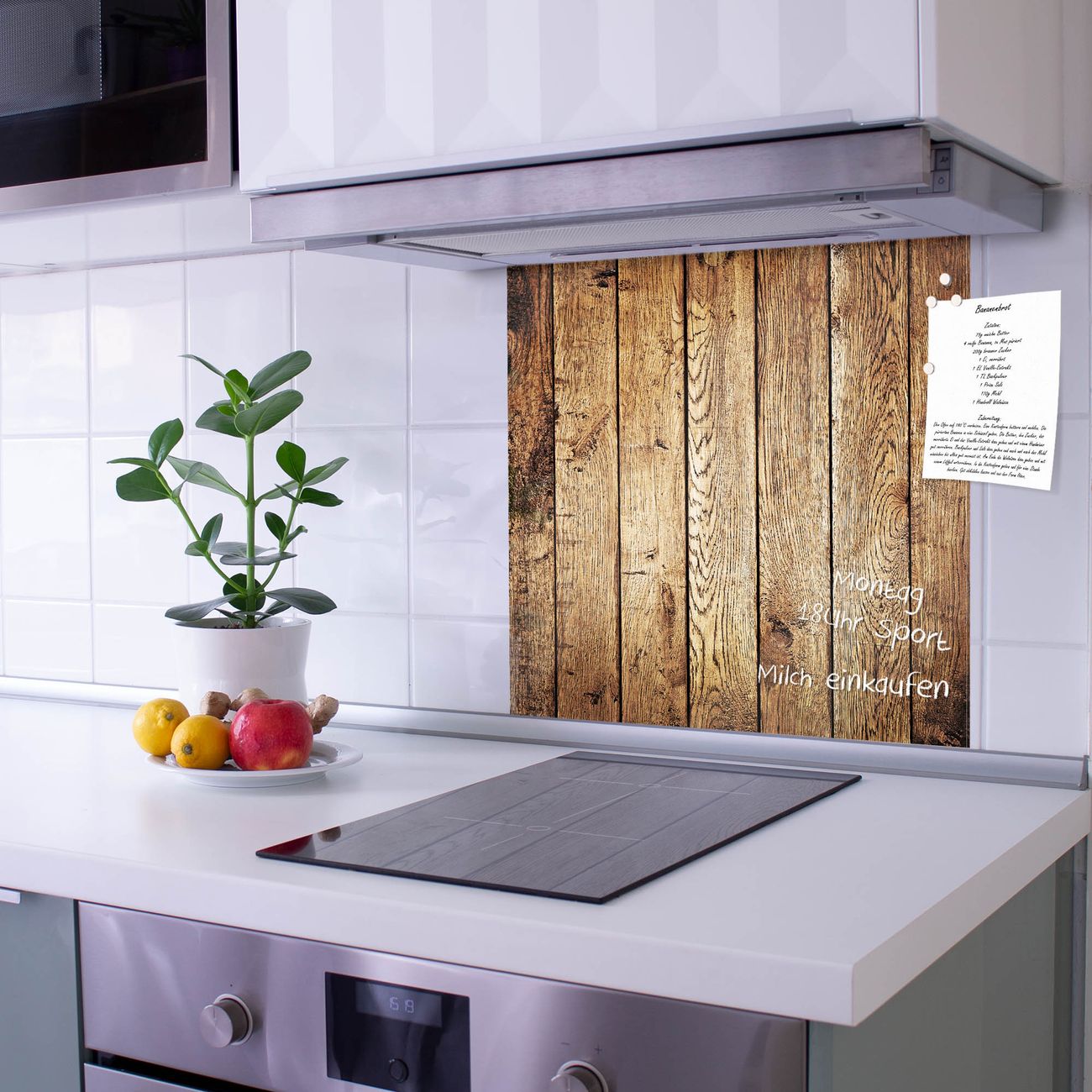 Die Küchenrückwand ist eine elegante Mehrzwecktafel: als Spritzschutz hinter Herd oder Waschbecken, hält Notizen wie ein Memoboard, ist beschreibbar mit Kreidestiften oder Whiteboard-Markern, sieht umwerfend als Glasbild aus. Sie besteht aus gehärtetem Glas, die Rückwand aus einem magnetischen Stahlblech. Durch die superflache Bauweise haben Sie die Wahl aus einer Vielzahl von Befestigungsmöglichkeiten. Sie können die Küchenrückwand mit einem Montagekleber superflach an die Wand kleben oder Sie wählen eines unserer passenden Befestigungssets, welches eine optimale Montage garantiert. Die Küchenrückwand besteht aus zertifiziertem Sicherheitsglas. Durch die mitgelieferten 4 Neodym-Magnete ist Ihre Glas Magnettafel sofort einsatzbereit.