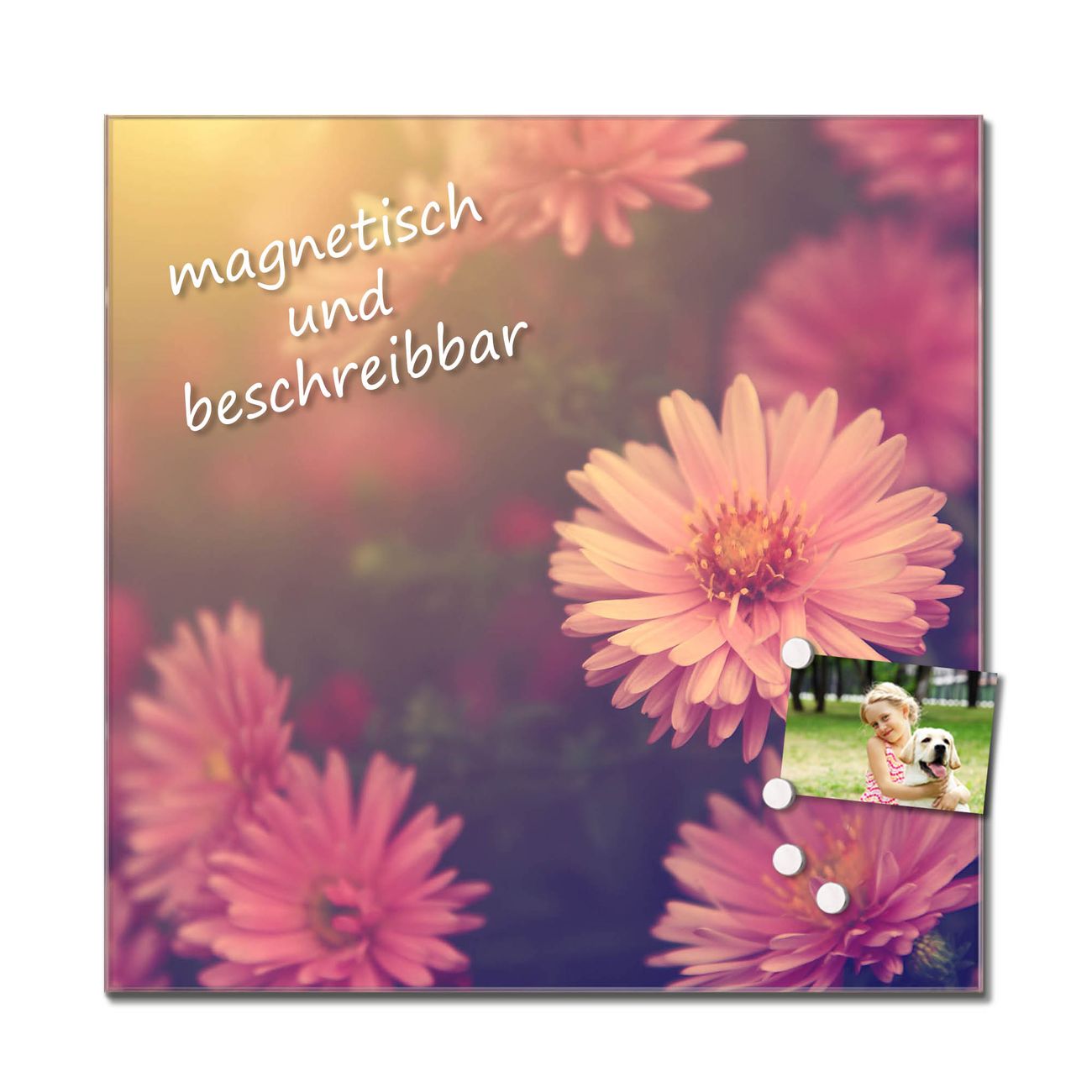 Bitte beachten Sie, dass ausschließlich spezielle Magnete an der Glastafel haften! Wir empfehlen banjado Neodym Magnete, diese sind durch uns auf Wirksamkeit geprüft.