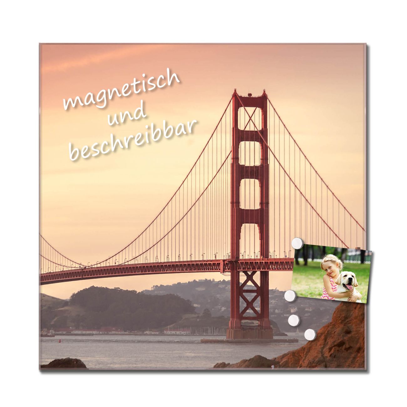Die banjado Glas Küchenrückwand in verschiedenen Größen mit Motiv Golden Gate Bridge 2 schützt Ihre Küchenfliesen vor Fettspritzern oder Wasserflecken. Der Spritzschutz ist gleichzeitig magnetisch und hält Ihre Rezepte oder Einkaufslisten. 4 Neodym-Magnete und 1 Kreidestift liegen bereits bei. Leuchtende Motive und hochwertiges Material machen den Spritzschutz zum Designobjekt. Das dekorative Glasbild gibt Ihrer Küche ein individuelles Erscheinungsbild. Abgerundete Kanten und Sicherheitsglas sorgen für einen sicheren Einsatz.