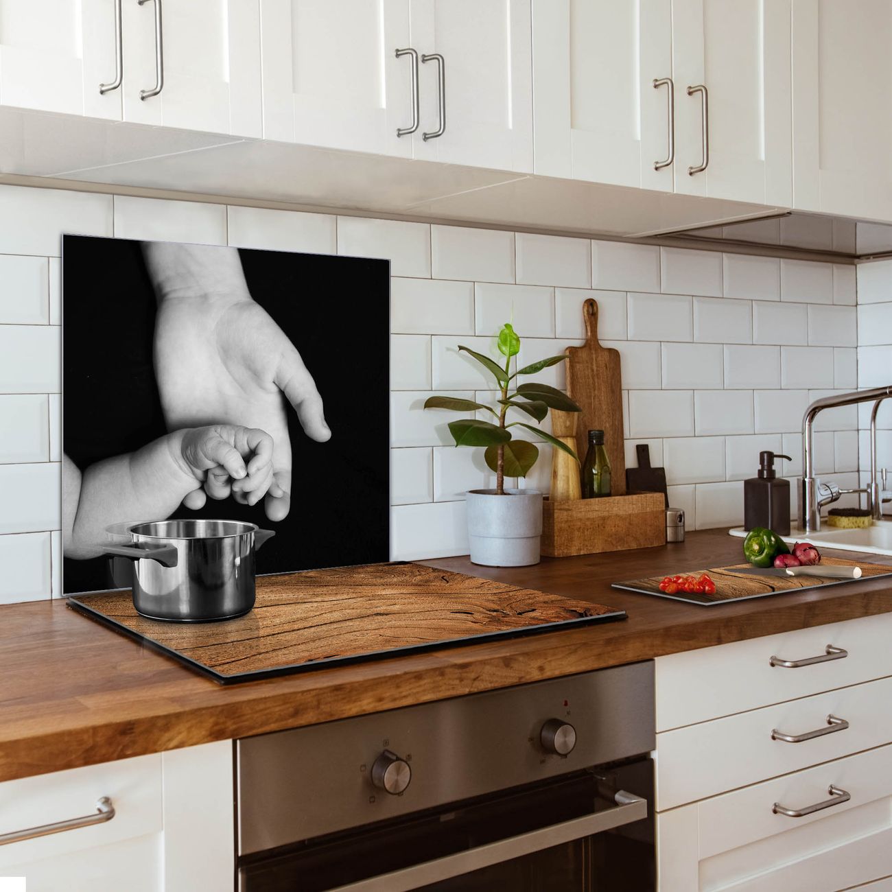 Küchenrückwand Glas Motiv Hands