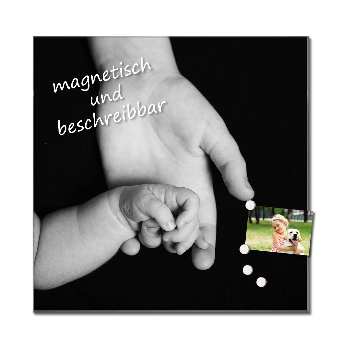 Bitte beachten Sie, dass ausschließlich spezielle Magnete an der Glastafel haften! Wir empfehlen banjado Neodym Magnete, diese sind durch uns auf Wirksamkeit geprüft.