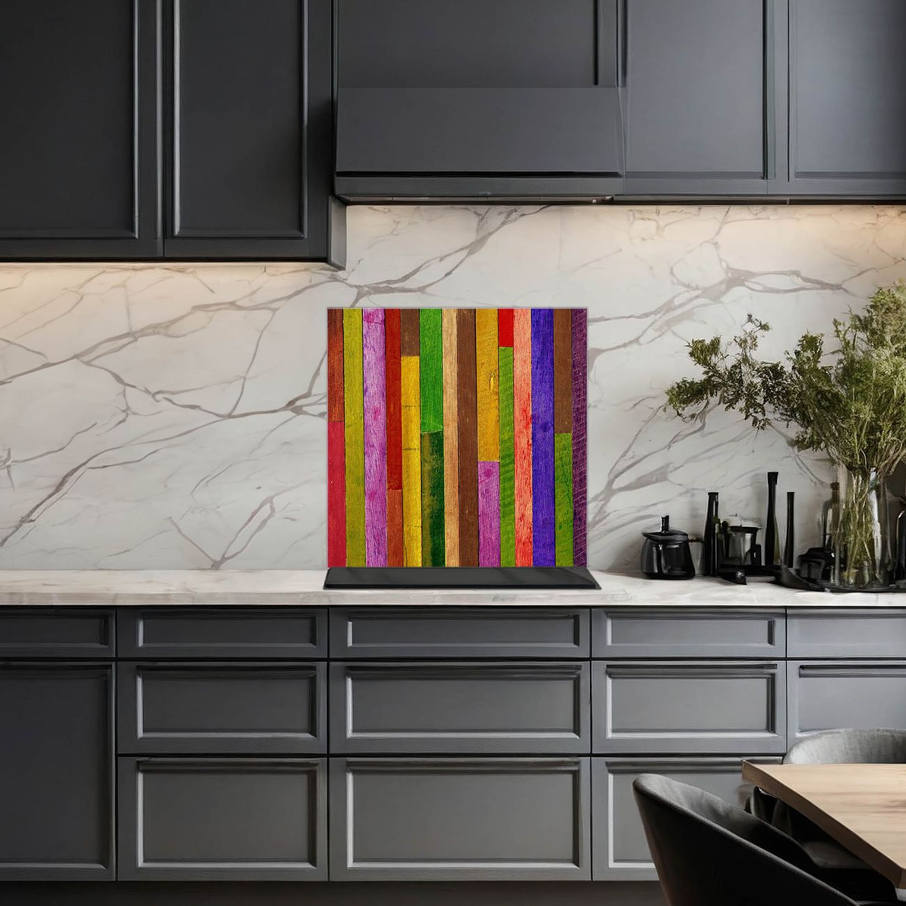 Küchenrückwand Glas Motiv Holz Collage Bunt