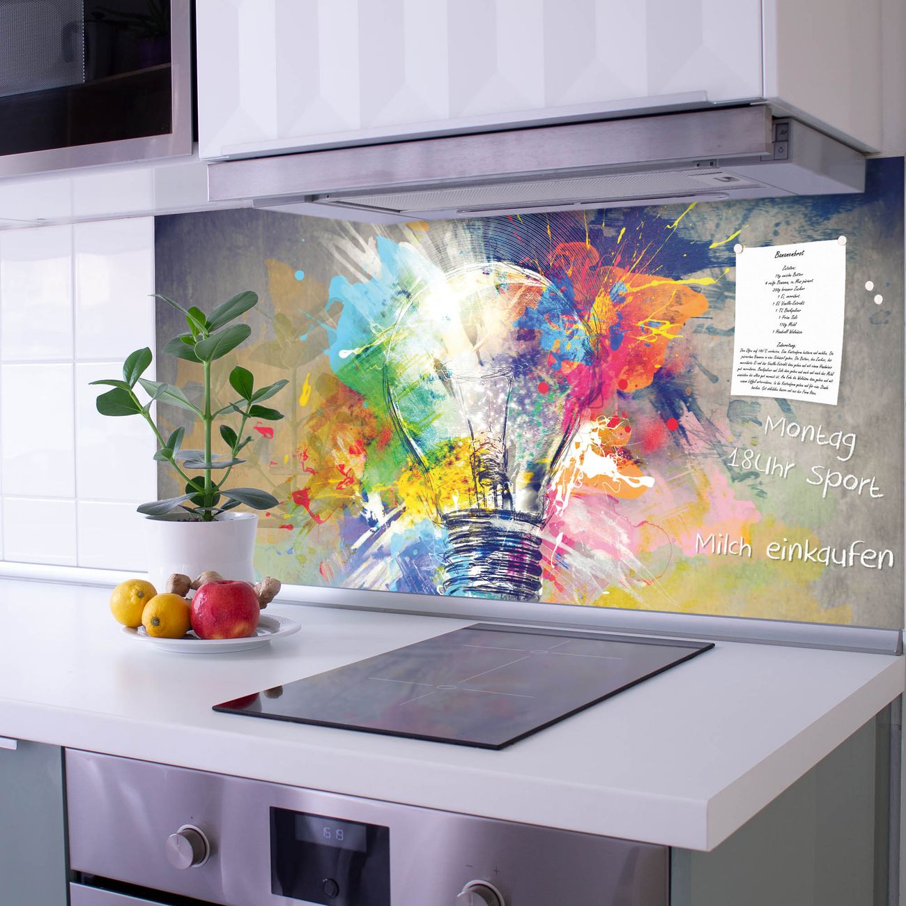 Die banjado Glas Küchenrückwand in verschiedenen Größen mit Motiv Idee schützt Ihre Küchenfliesen vor Fettspritzern oder Wasserflecken. Der Spritzschutz ist gleichzeitig magnetisch und hält Ihre Rezepte oder Einkaufslisten. 4 Neodym-Magnete und 1 Kreidestift liegen bereits bei. Leuchtende Motive und hochwertiges Material machen den Spritzschutz zum Designobjekt. Das dekorative Glasbild gibt Ihrer Küche ein individuelles Erscheinungsbild. Abgerundete Kanten und Sicherheitsglas sorgen für einen sicheren Einsatz.