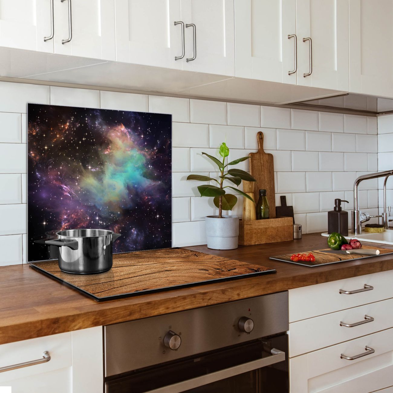 Die banjado Glas Küchenrückwand in verschiedenen Größen mit Motiv Im Weltall 2 schützt Ihre Küchenfliesen vor Fettspritzern oder Wasserflecken. Der Spritzschutz ist gleichzeitig magnetisch und hält Ihre Rezepte oder Einkaufslisten. 4 Neodym-Magnete und 1 Kreidestift liegen bereits bei. Leuchtende Motive und hochwertiges Material machen den Spritzschutz zum Designobjekt. Das dekorative Glasbild gibt Ihrer Küche ein individuelles Erscheinungsbild. Abgerundete Kanten und Sicherheitsglas sorgen für einen sicheren Einsatz.