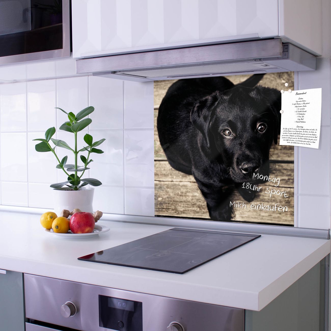 Die Küchenrückwand ist eine elegante Mehrzwecktafel: als Spritzschutz hinter Herd oder Waschbecken, hält Notizen wie ein Memoboard, ist beschreibbar mit Kreidestiften oder Whiteboard-Markern, sieht umwerfend als Glasbild aus. Sie besteht aus gehärtetem Glas, die Rückwand aus einem magnetischen Stahlblech. Durch die superflache Bauweise haben Sie die Wahl aus einer Vielzahl von Befestigungsmöglichkeiten. Sie können die Küchenrückwand mit einem Montagekleber superflach an die Wand kleben oder Sie wählen eines unserer passenden Befestigungssets, welches eine optimale Montage garantiert. Die Küchenrückwand besteht aus zertifiziertem Sicherheitsglas. Durch die mitgelieferten 4 Neodym-Magnete ist Ihre Glas Magnettafel sofort einsatzbereit.