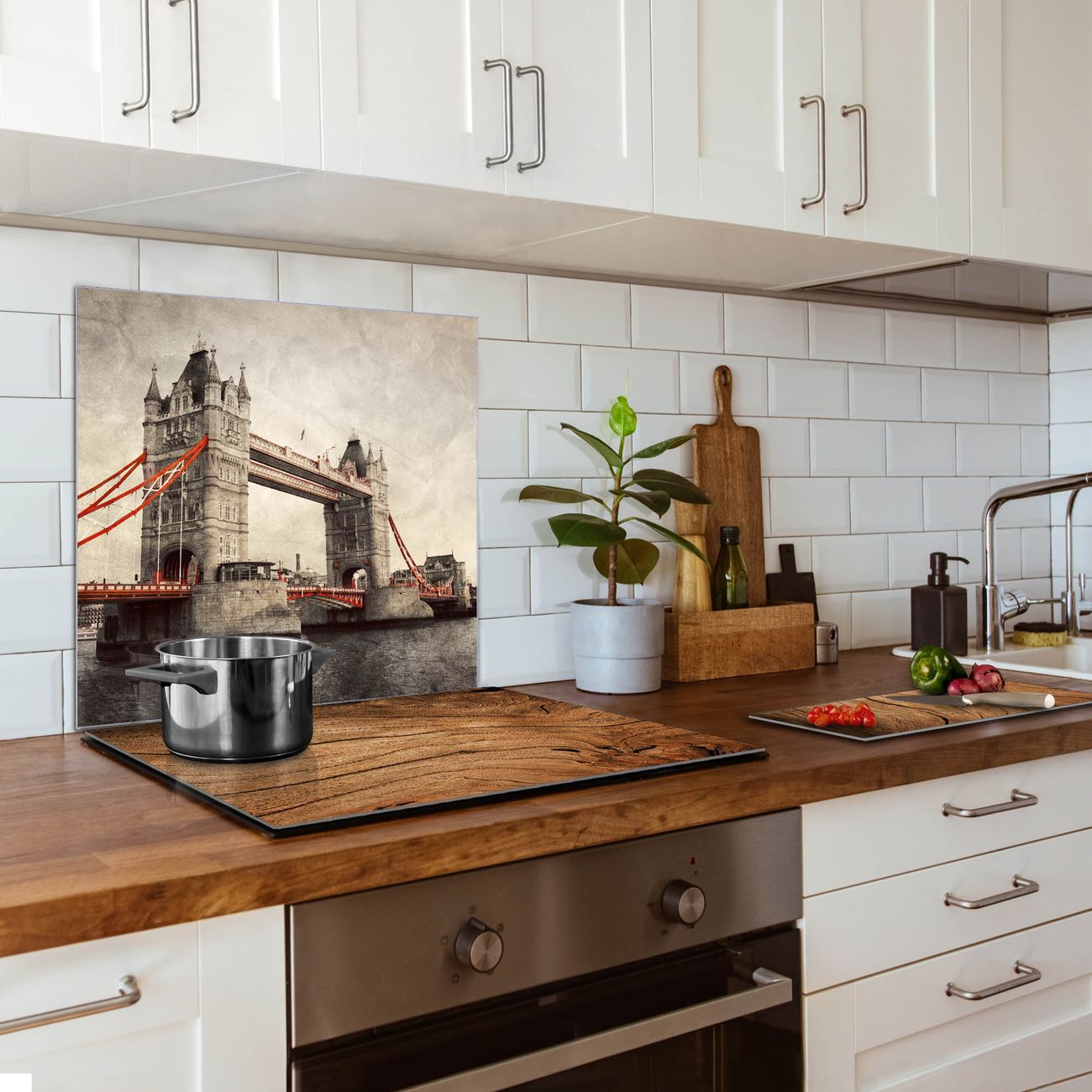 Die banjado Glas Küchenrückwand in verschiedenen Größen mit Motiv London Bridge schützt Ihre Küchenfliesen vor Fettspritzern oder Wasserflecken. Der Spritzschutz ist gleichzeitig magnetisch und hält Ihre Rezepte oder Einkaufslisten. 4 Neodym-Magnete und 1 Kreidestift liegen bereits bei. Leuchtende Motive und hochwertiges Material machen den Spritzschutz zum Designobjekt. Das dekorative Glasbild gibt Ihrer Küche ein individuelles Erscheinungsbild. Abgerundete Kanten und Sicherheitsglas sorgen für einen sicheren Einsatz.