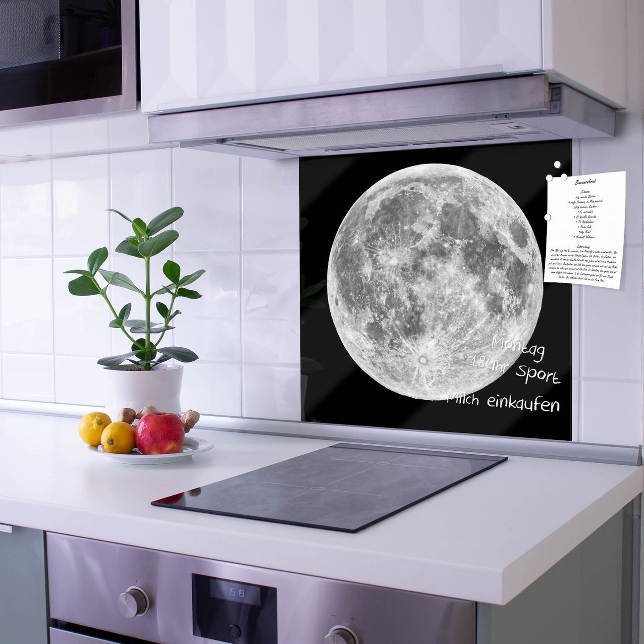 Die banjado Glas Küchenrückwand in verschiedenen Größen mit Motiv Mond schützt Ihre Küchenfliesen vor Fettspritzern oder Wasserflecken. Der Spritzschutz ist gleichzeitig magnetisch und hält Ihre Rezepte oder Einkaufslisten. 4 Neodym-Magnete und 1 Kreidestift liegen bereits bei. Leuchtende Motive und hochwertiges Material machen den Spritzschutz zum Designobjekt. Das dekorative Glasbild gibt Ihrer Küche ein individuelles Erscheinungsbild. Abgerundete Kanten und Sicherheitsglas sorgen für einen sicheren Einsatz.