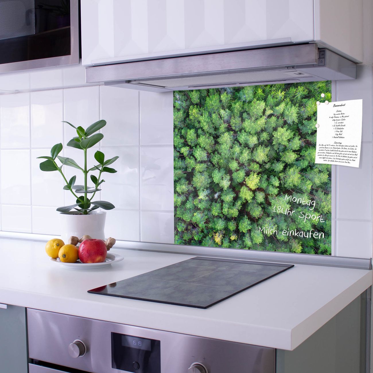 Die banjado Glas Küchenrückwand in verschiedenen Größen mit Motiv Nadelwald schützt Ihre Küchenfliesen vor Fettspritzern oder Wasserflecken. Der Spritzschutz ist gleichzeitig magnetisch und hält Ihre Rezepte oder Einkaufslisten. 4 Neodym-Magnete und 1 Kreidestift liegen bereits bei. Leuchtende Motive und hochwertiges Material machen den Spritzschutz zum Designobjekt. Das dekorative Glasbild gibt Ihrer Küche ein individuelles Erscheinungsbild. Abgerundete Kanten und Sicherheitsglas sorgen für einen sicheren Einsatz.