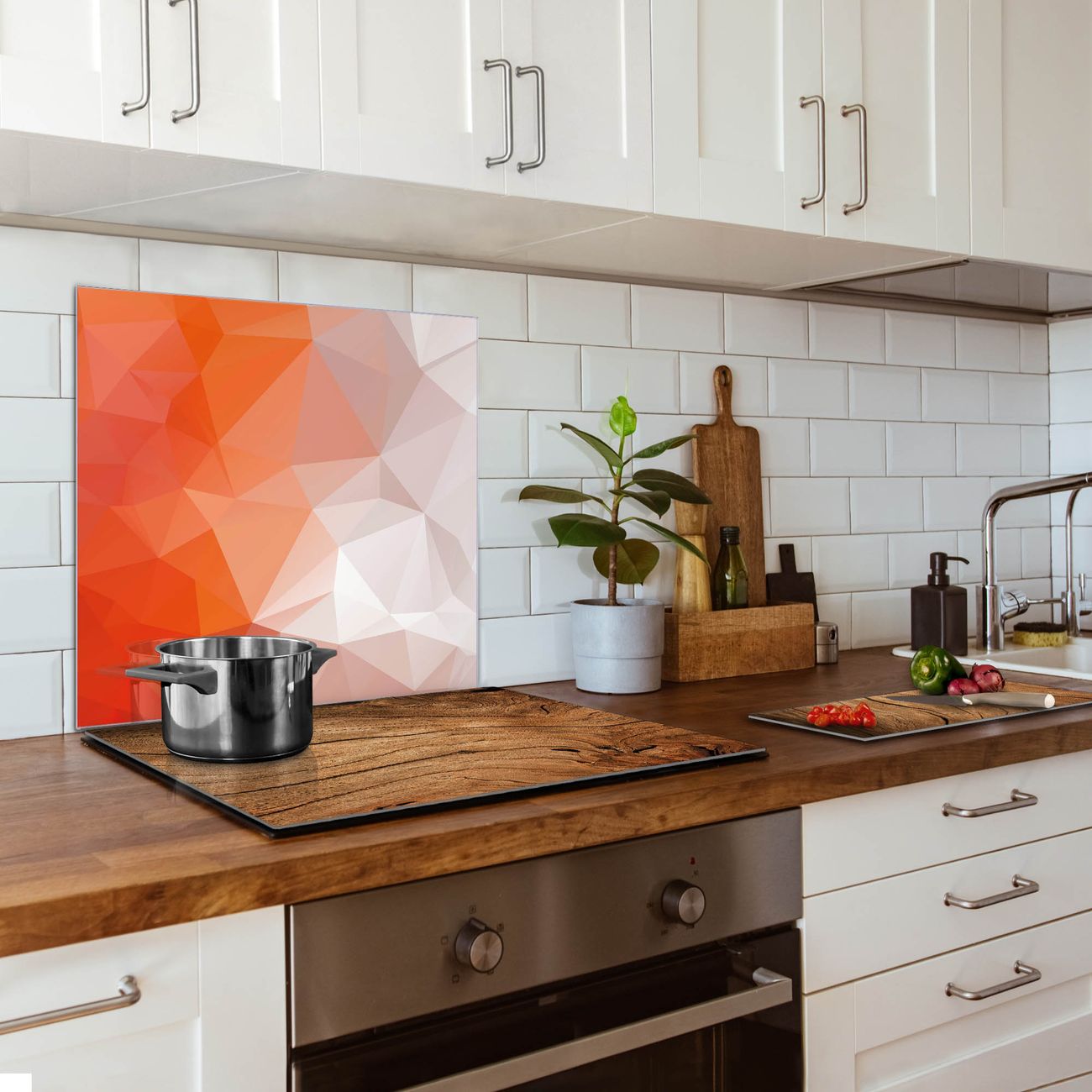 Küchenrückwand Glas Motiv Orange Polygon
