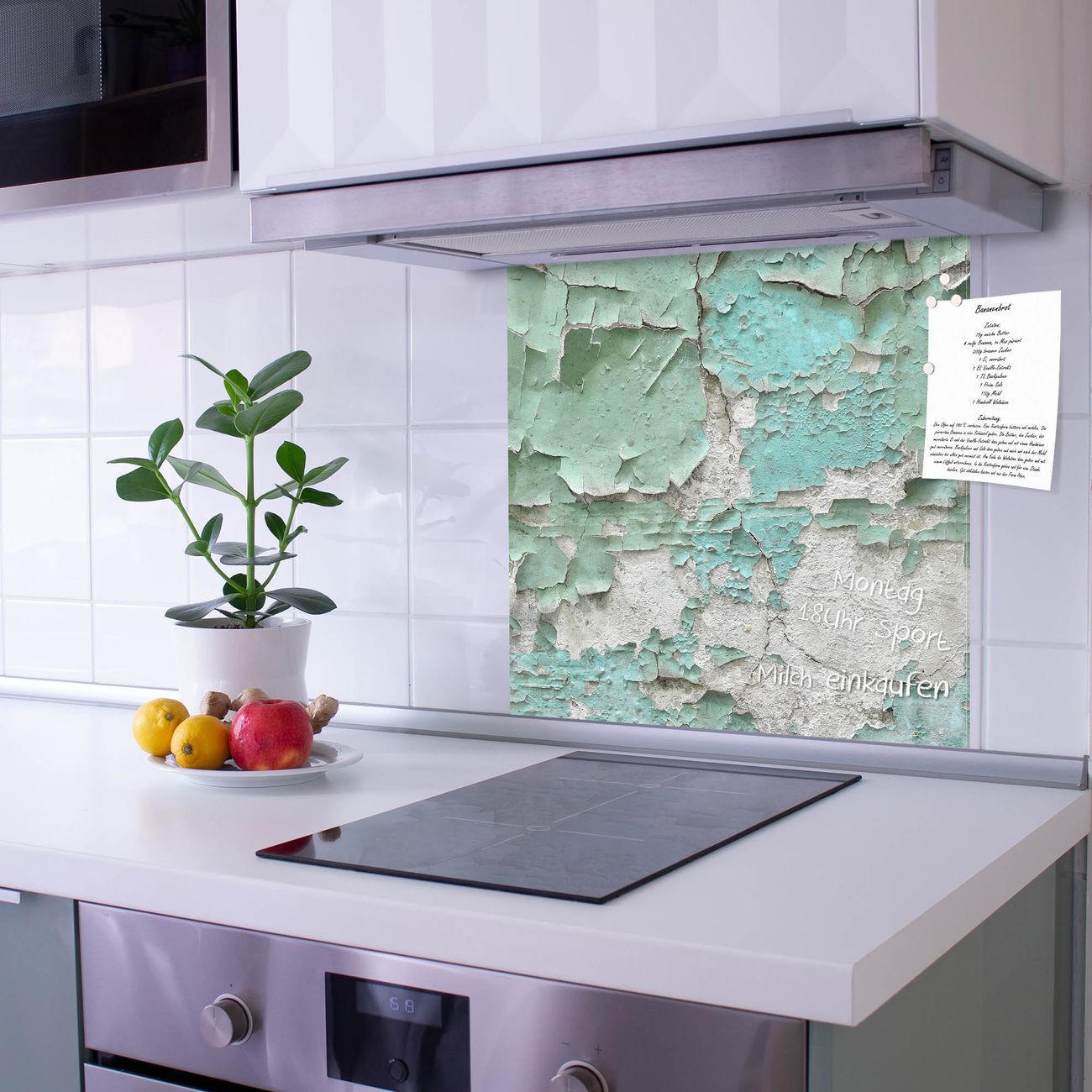 Die Küchenrückwand ist eine elegante Mehrzwecktafel: als Spritzschutz hinter Herd oder Waschbecken, hält Notizen wie ein Memoboard, ist beschreibbar mit Kreidestiften oder Whiteboard-Markern, sieht umwerfend als Glasbild aus. Sie besteht aus gehärtetem Glas, die Rückwand aus einem magnetischen Stahlblech. Durch die superflache Bauweise haben Sie die Wahl aus einer Vielzahl von Befestigungsmöglichkeiten. Sie können die Küchenrückwand mit einem Montagekleber superflach an die Wand kleben oder Sie wählen eines unserer passenden Befestigungssets, welches eine optimale Montage garantiert. Die Küchenrückwand besteht aus zertifiziertem Sicherheitsglas. Durch die mitgelieferten 4 Neodym-Magnete ist Ihre Glas Magnettafel sofort einsatzbereit.
