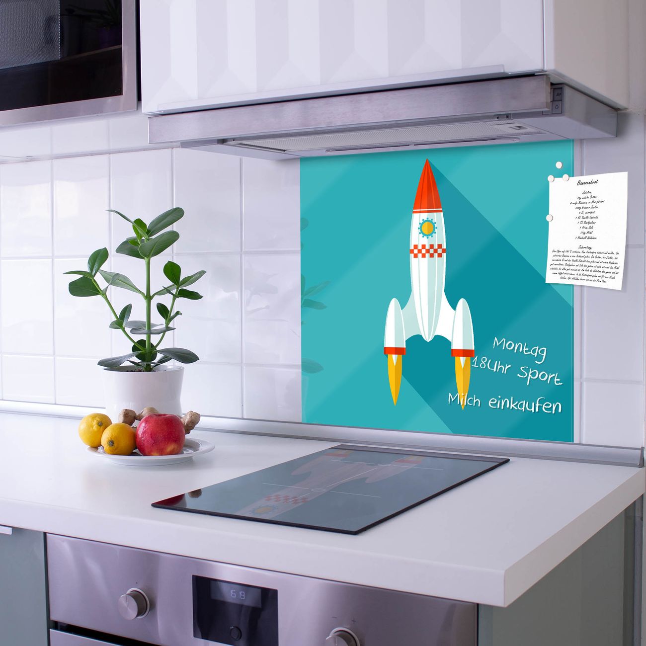 Die banjado Glas Küchenrückwand in verschiedenen Größen mit Motiv Rakete schützt Ihre Küchenfliesen vor Fettspritzern oder Wasserflecken. Der Spritzschutz ist gleichzeitig magnetisch und hält Ihre Rezepte oder Einkaufslisten. 4 Neodym-Magnete und 1 Kreidestift liegen bereits bei. Leuchtende Motive und hochwertiges Material machen den Spritzschutz zum Designobjekt. Das dekorative Glasbild gibt Ihrer Küche ein individuelles Erscheinungsbild. Abgerundete Kanten und Sicherheitsglas sorgen für einen sicheren Einsatz.