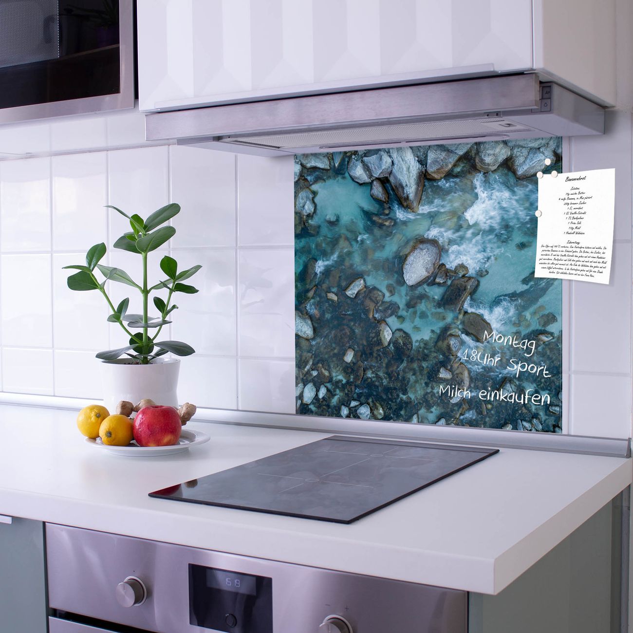 Die banjado Glas Küchenrückwand in verschiedenen Größen mit Motiv Steinbucht 2 schützt Ihre Küchenfliesen vor Fettspritzern oder Wasserflecken. Der Spritzschutz ist gleichzeitig magnetisch und hält Ihre Rezepte oder Einkaufslisten. 4 Neodym-Magnete und 1 Kreidestift liegen bereits bei. Leuchtende Motive und hochwertiges Material machen den Spritzschutz zum Designobjekt. Das dekorative Glasbild gibt Ihrer Küche ein individuelles Erscheinungsbild. Abgerundete Kanten und Sicherheitsglas sorgen für einen sicheren Einsatz.