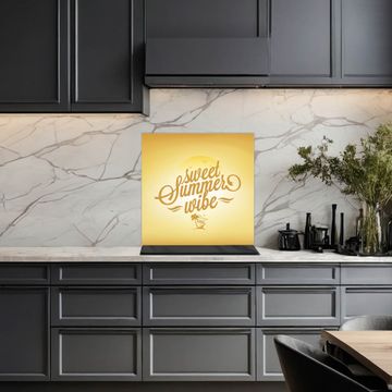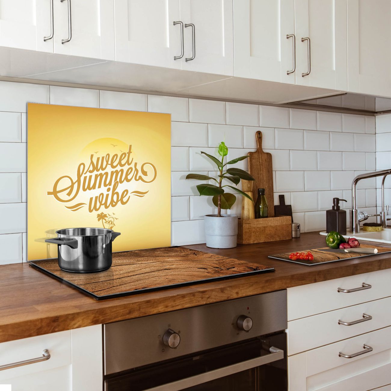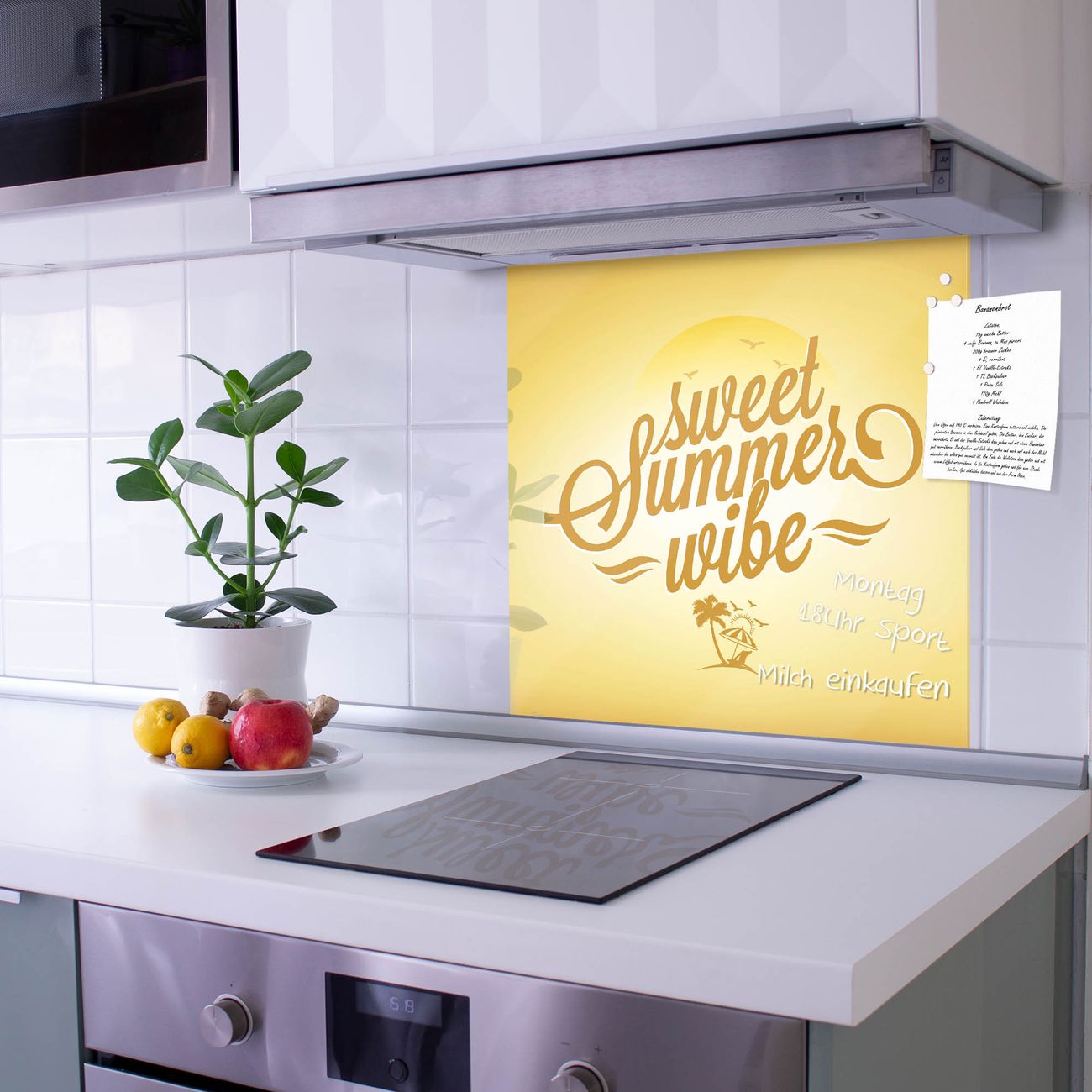 Die banjado Glas Küchenrückwand in verschiedenen Größen mit Motiv Summer Wibe schützt Ihre Küchenfliesen vor Fettspritzern oder Wasserflecken. Der Spritzschutz ist gleichzeitig magnetisch und hält Ihre Rezepte oder Einkaufslisten. 4 Neodym-Magnete und 1 Kreidestift liegen bereits bei. Leuchtende Motive und hochwertiges Material machen den Spritzschutz zum Designobjekt. Das dekorative Glasbild gibt Ihrer Küche ein individuelles Erscheinungsbild. Abgerundete Kanten und Sicherheitsglas sorgen für einen sicheren Einsatz.