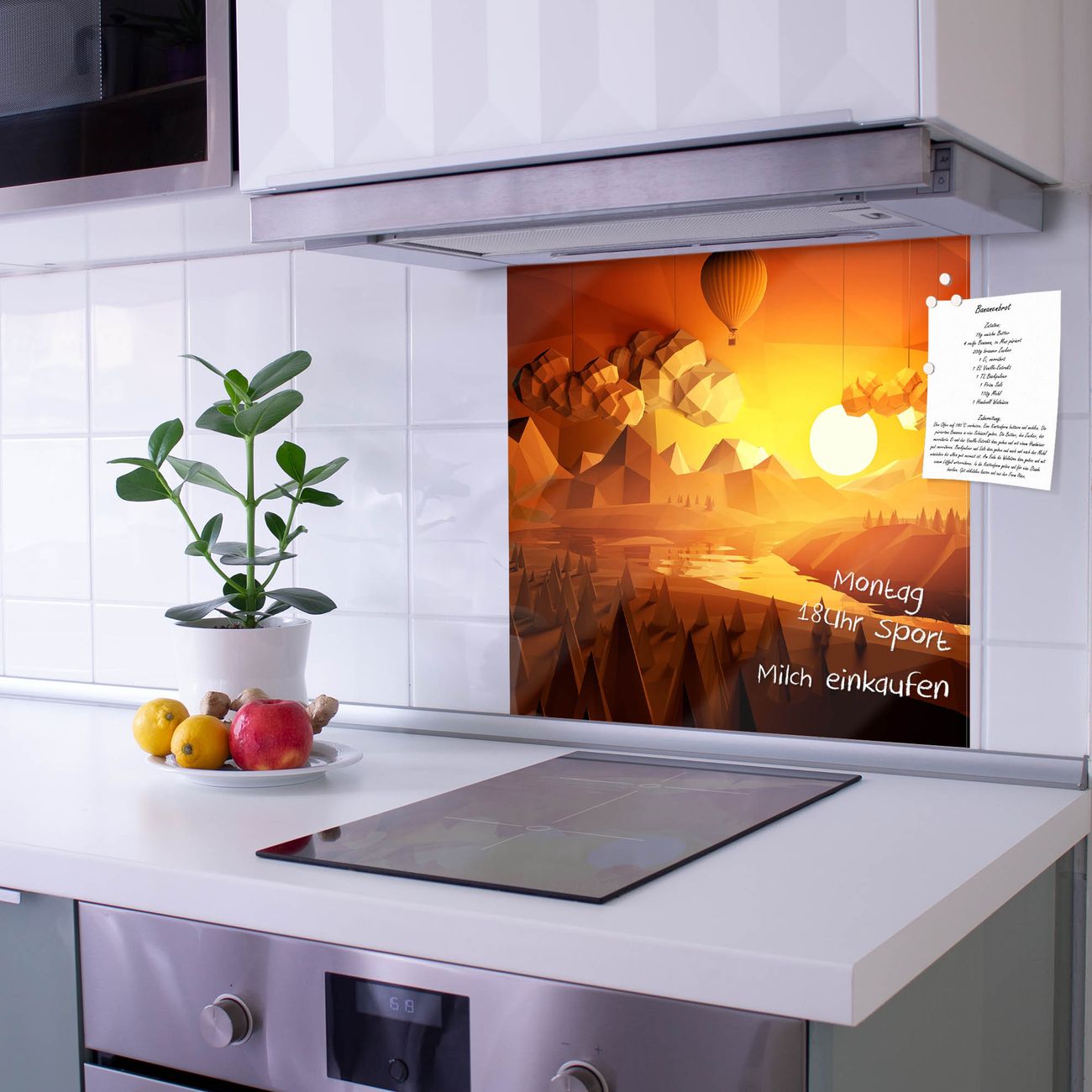 Die banjado Glas Küchenrückwand in verschiedenen Größen mit Motiv Sunset schützt Ihre Küchenfliesen vor Fettspritzern oder Wasserflecken. Der Spritzschutz ist gleichzeitig magnetisch und hält Ihre Rezepte oder Einkaufslisten. 4 Neodym-Magnete und 1 Kreidestift liegen bereits bei. Leuchtende Motive und hochwertiges Material machen den Spritzschutz zum Designobjekt. Das dekorative Glasbild gibt Ihrer Küche ein individuelles Erscheinungsbild. Abgerundete Kanten und Sicherheitsglas sorgen für einen sicheren Einsatz.