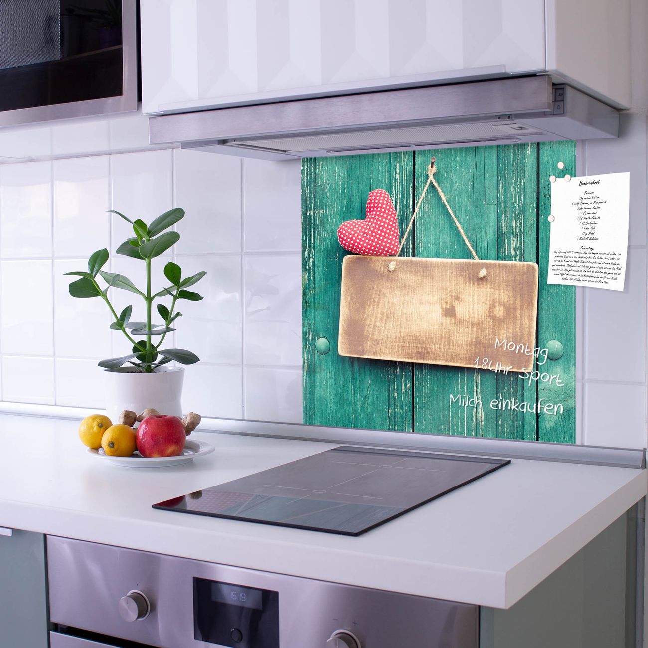 Die Küchenrückwand ist eine elegante Mehrzwecktafel: als Spritzschutz hinter Herd oder Waschbecken, hält Notizen wie ein Memoboard, ist beschreibbar mit Kreidestiften oder Whiteboard-Markern, sieht umwerfend als Glasbild aus. Sie besteht aus gehärtetem Glas, die Rückwand aus einem magnetischen Stahlblech. Durch die superflache Bauweise haben Sie die Wahl aus einer Vielzahl von Befestigungsmöglichkeiten. Sie können die Küchenrückwand mit einem Montagekleber superflach an die Wand kleben oder Sie wählen eines unserer passenden Befestigungssets, welches eine optimale Montage garantiert. Die Küchenrückwand besteht aus zertifiziertem Sicherheitsglas. Durch die mitgelieferten 4 Neodym-Magnete ist Ihre Glas Magnettafel sofort einsatzbereit.