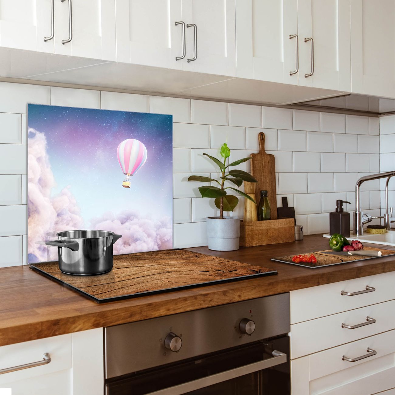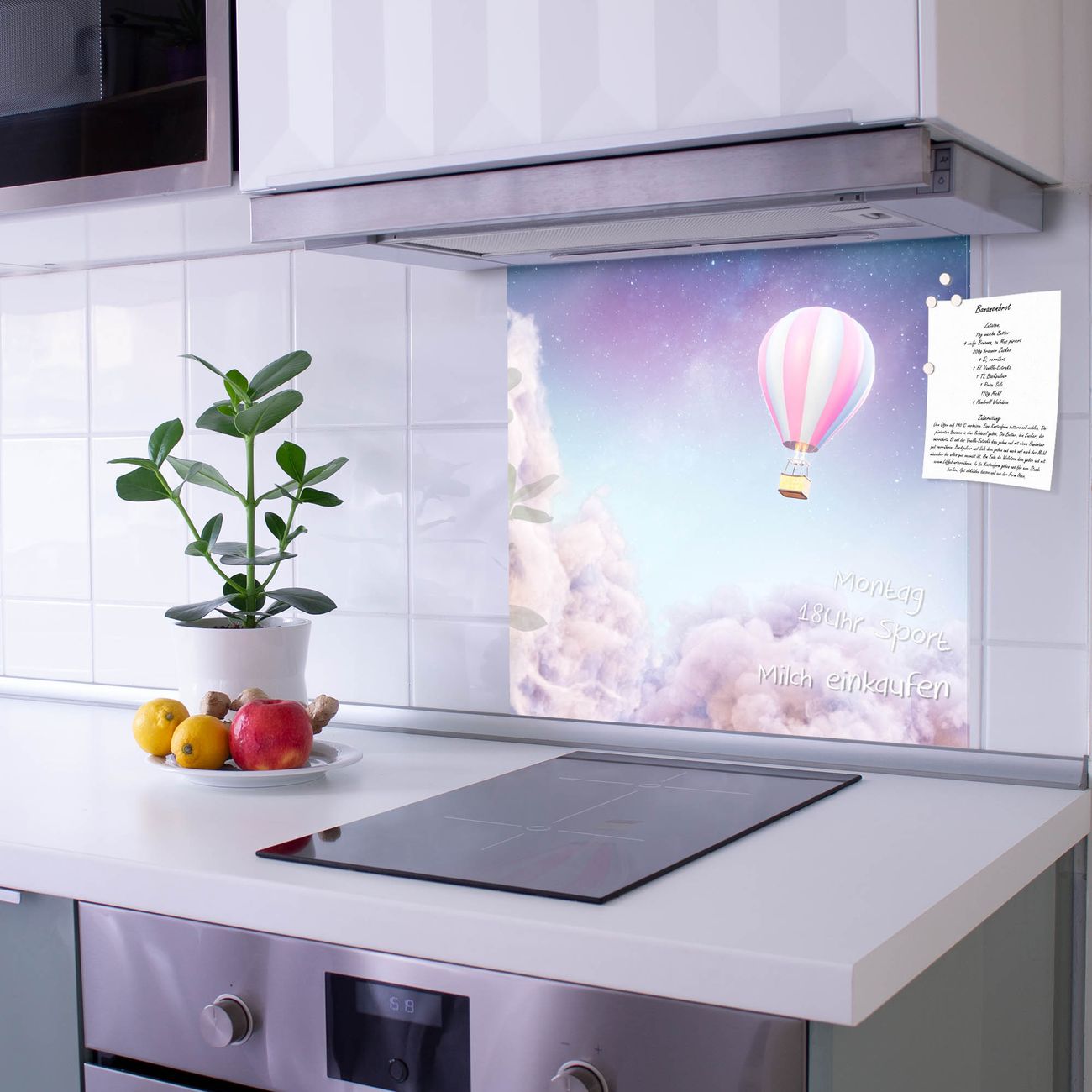 Die banjado Glas Küchenrückwand in verschiedenen Größen mit Motiv Über den Wolken schützt Ihre Küchenfliesen vor Fettspritzern oder Wasserflecken. Der Spritzschutz ist gleichzeitig magnetisch und hält Ihre Rezepte oder Einkaufslisten. 4 Neodym-Magnete und 1 Kreidestift liegen bereits bei. Leuchtende Motive und hochwertiges Material machen den Spritzschutz zum Designobjekt. Das dekorative Glasbild gibt Ihrer Küche ein individuelles Erscheinungsbild. Abgerundete Kanten und Sicherheitsglas sorgen für einen sicheren Einsatz.