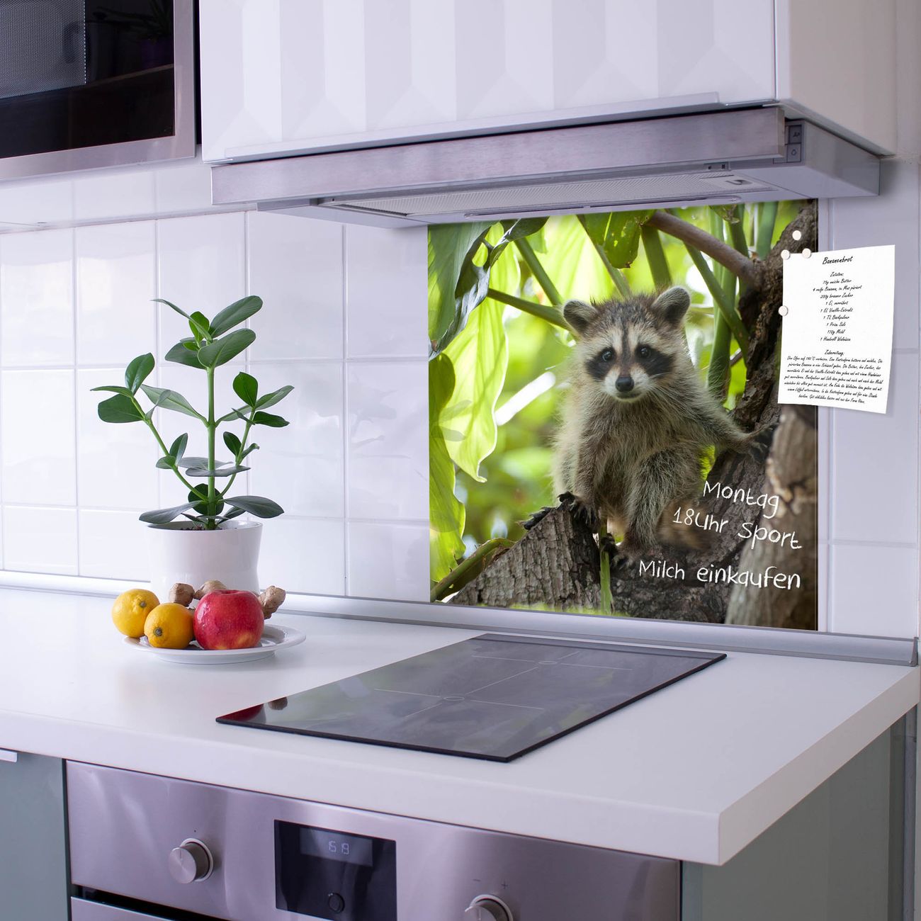 Die banjado Glas Küchenrückwand in verschiedenen Größen mit Motiv Waschbär schützt Ihre Küchenfliesen vor Fettspritzern oder Wasserflecken. Der Spritzschutz ist gleichzeitig magnetisch und hält Ihre Rezepte oder Einkaufslisten. 4 Neodym-Magnete und 1 Kreidestift liegen bereits bei. Leuchtende Motive und hochwertiges Material machen den Spritzschutz zum Designobjekt. Das dekorative Glasbild gibt Ihrer Küche ein individuelles Erscheinungsbild. Abgerundete Kanten und Sicherheitsglas sorgen für einen sicheren Einsatz.