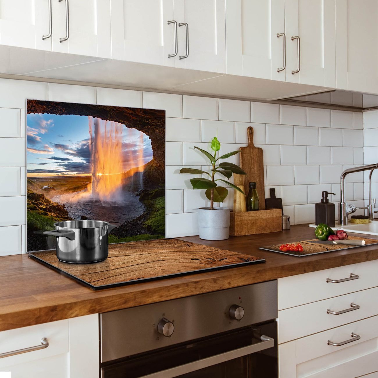 Die banjado Glas Küchenrückwand in verschiedenen Größen mit Motiv Wasserfall im Sonnenlicht schützt Ihre Küchenfliesen vor Fettspritzern oder Wasserflecken. Der Spritzschutz ist gleichzeitig magnetisch und hält Ihre Rezepte oder Einkaufslisten. 4 Neodym-Magnete und 1 Kreidestift liegen bereits bei. Leuchtende Motive und hochwertiges Material machen den Spritzschutz zum Designobjekt. Das dekorative Glasbild gibt Ihrer Küche ein individuelles Erscheinungsbild. Abgerundete Kanten und Sicherheitsglas sorgen für einen sicheren Einsatz.
