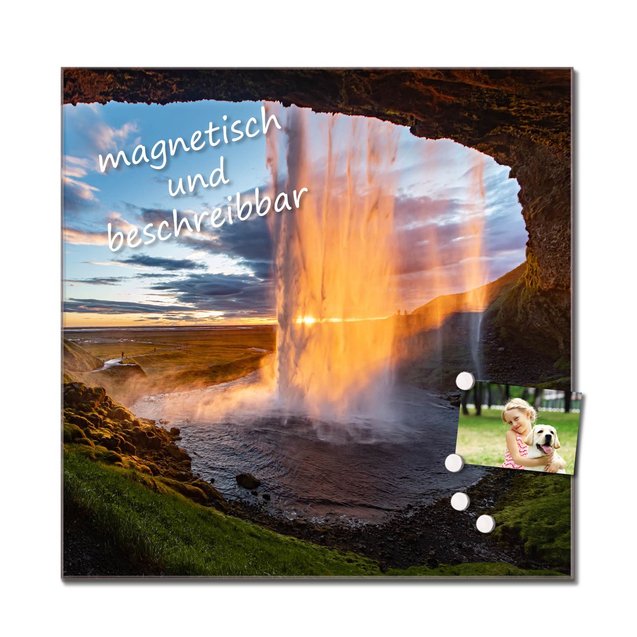 Bitte beachten Sie, dass ausschließlich spezielle Magnete an der Glastafel haften! Wir empfehlen banjado Neodym Magnete, diese sind durch uns auf Wirksamkeit geprüft.