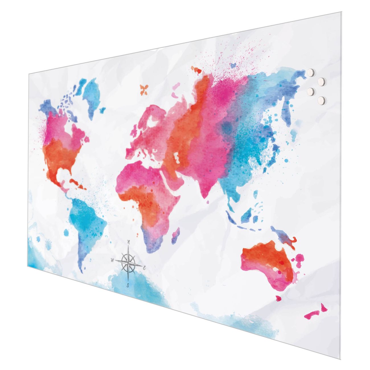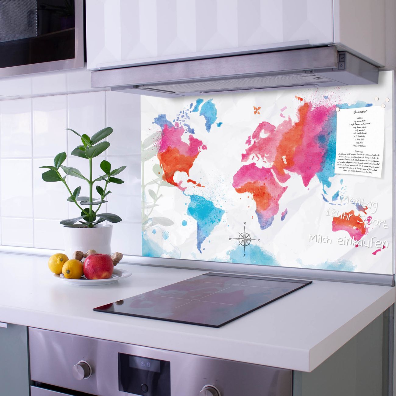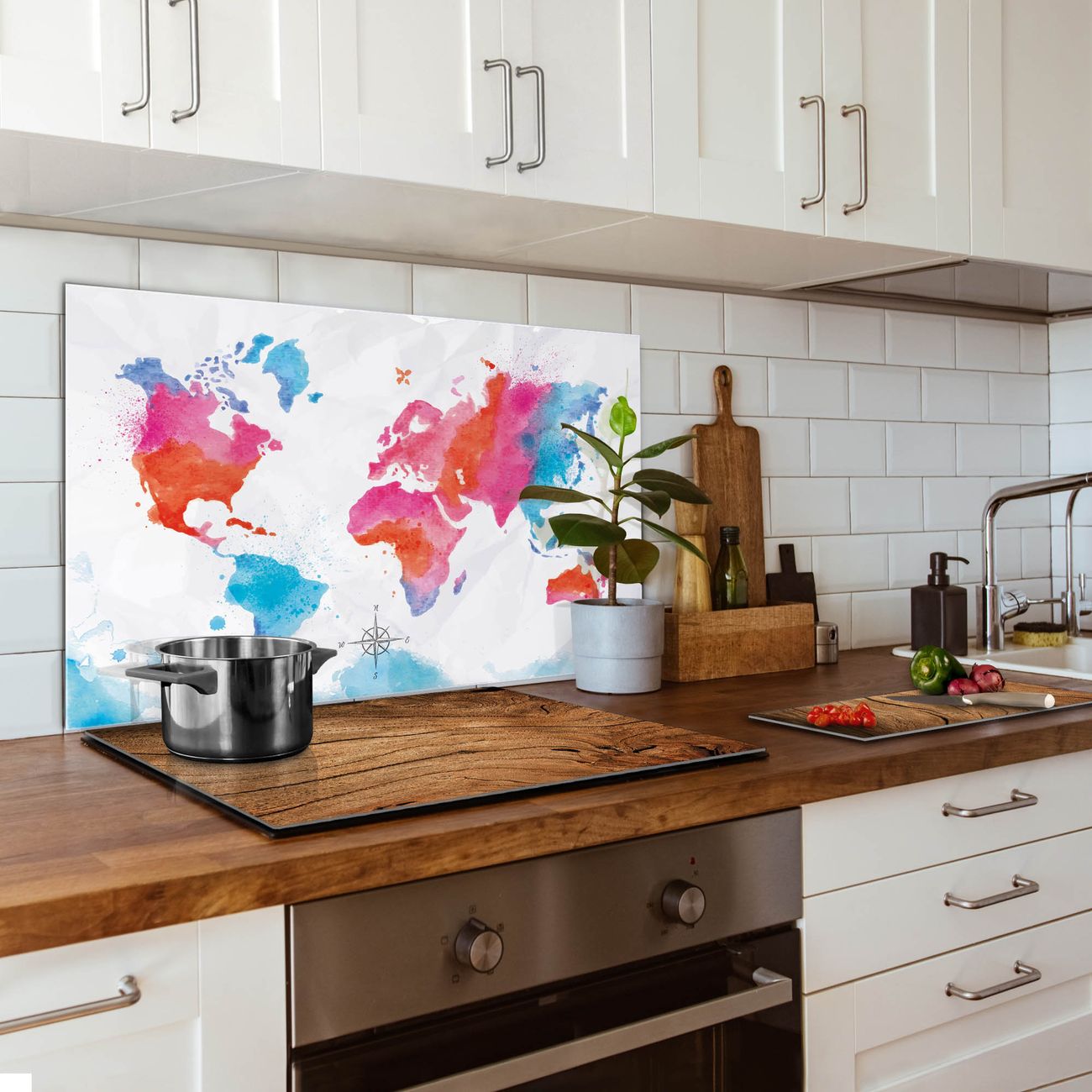 Küchenrückwand Glas Motiv Weltkarte pastell